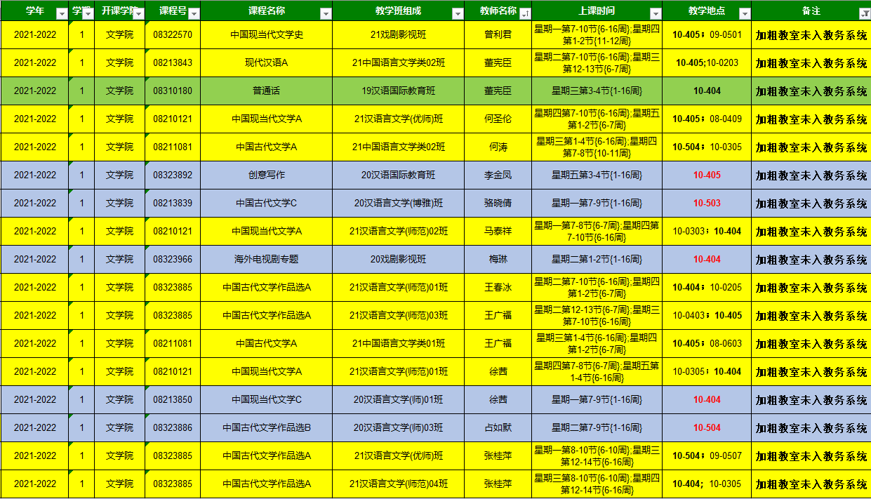 注:该班级课表为20210901系统导出,仅供参考。部分课程后面可能存在授课教师调停课情况,请以教务系统实时课表为准。