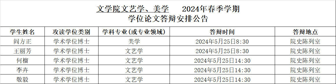 best365英国在线体育官网2024年春季学期文艺学、美学专业博士学位论文答辩安排公告