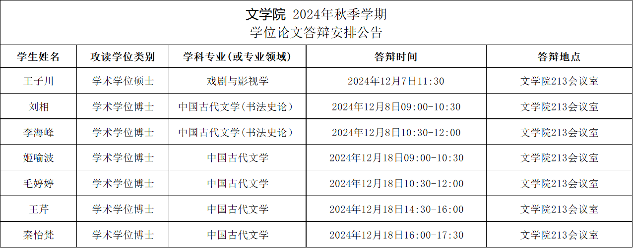 西南大学best365英国在线体育官网2024年秋季学期研究生学位论文答辩公告