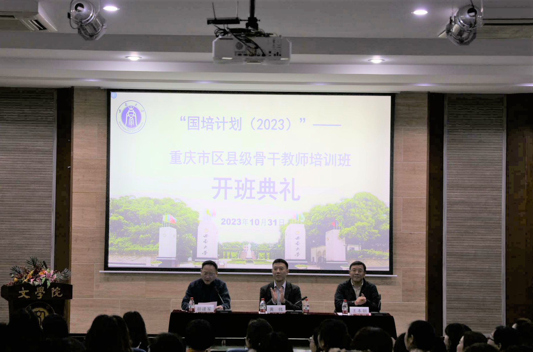 10月31日,best365英国在线体育官网举行“国培计划(2023)——重庆市区县级骨干教师培训开班典礼。开班典礼由best365英国在线体育官网党委书记胡建军主持。重庆市教育委员会师范教育处处长黄伟,西南大学best365英国在线体育官网院长王本朝、党委书记胡建军、项目负责人及班主任出席开班典礼,典礼由胡建军书记主持。来自重庆市区县级骨干教师培训项目的全体学员参加开班典礼。