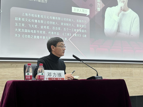 12月8日,资深制片人邓力维做客best365英国在线体育官网名师讲坛,带来题为“《三体》:从小说到网剧”的讲座。讲座由best365英国在线体育官网影视艺术系主任刘帆教授主持,相关专业师生参加本次讲座。