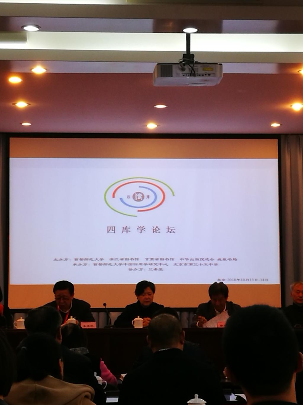 2018年10月13-14日由首都师范大学、浙江省图书馆、甘肃省图书馆、中华出版促进会、线装书局主办的“四库学论坛”在京召开,国内外一百多名专家学者参加了会议。我院教师王春玲受邀参会,提交并发表会议论文《论< 四库全书总目>的语言学价值——以经部小学类为中心》。