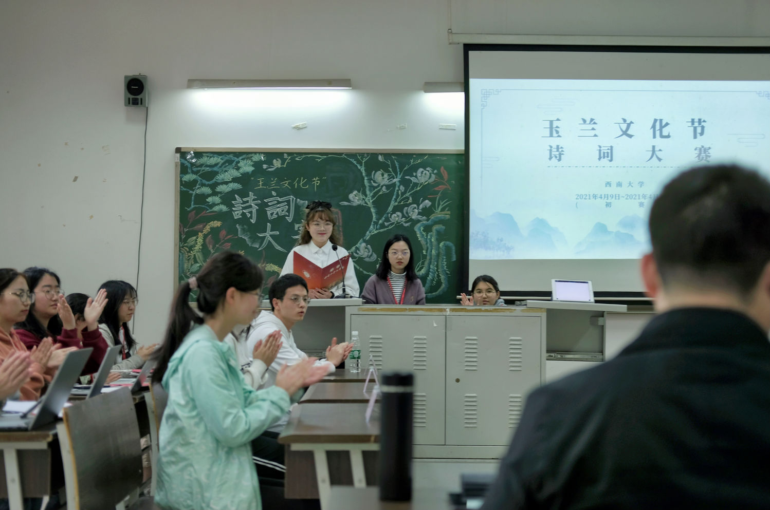 为弘扬中华传统文化,增强文化认同、文化自信,促进西大学子对古诗词文化和本校丰厚底蕴的了解, 4 月 9 日—10日,best365英国在线体育官网举办“玉兰飞花令”诗词大会初赛,活动由学校党委宣传部、党委网络工作部、党委学生工作部、best365英国在线体育官网主办,best365英国在线体育官网团委学生会承办。best365英国在线体育官网杨怀源教授、周浩老师出席活动并担任评委嘉宾。来自西南大学各个学院的诗词爱好者们参加比赛。