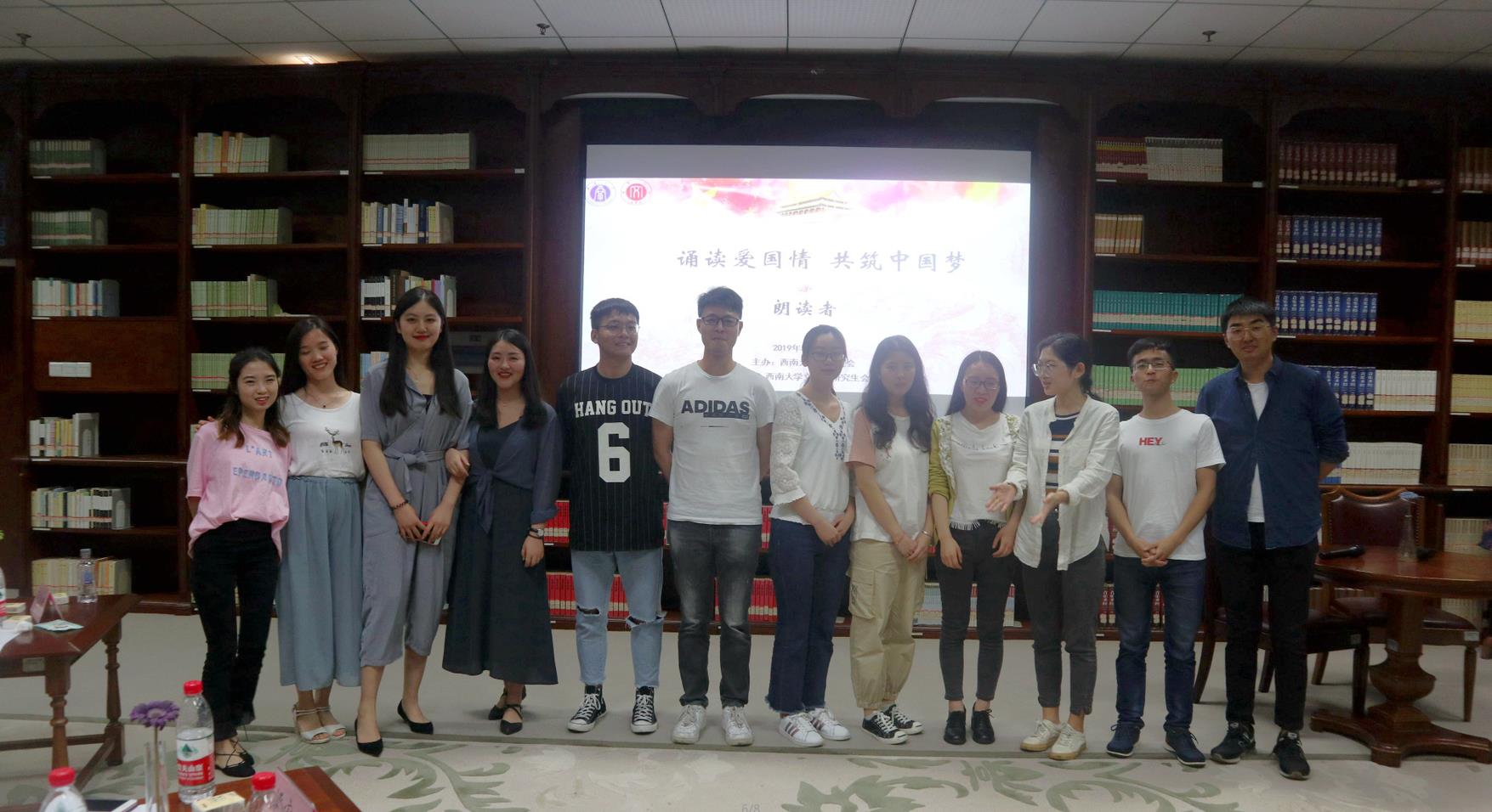 5月24日晚,由西南大学研究生会主办、西南大学best365英国在线体育官网研究生会承办的“诵读爱国情,共筑中国梦”朗读者活动决赛在中心图书馆九楼成功举办。经过前期初赛的选拔,有10名选手进入到最终决赛环节。本次活动邀请到国家一级播音员,多项全国、省市广播电视政府奖获得者,全国公益广告先进个人吴军老师以及第一届“朗读者”获奖选手代表张江惠、毕钊源两位同学共同担任本次比赛的评委。评审团由校研究生会副主席杨希、王瑞以及来自历史文化学院 民族学院等学院研究生会主席团的10名成员共同组成。