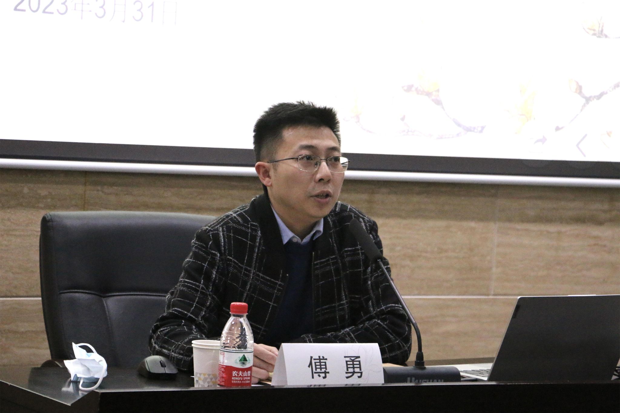 傅勇老师立足当下中学教育现状,指出班主任工作是学校工作的核心环节。他先以“钱学森之问”引导同学们思考“我们需要怎样的教育?”,后提出班级管理的重心:静、净、竞、精,并认为一名合格的班主任不仅应当有一身过硬的基本功,更要在其他方面对学生进行必要的指导,真正促进学生的全面发展。