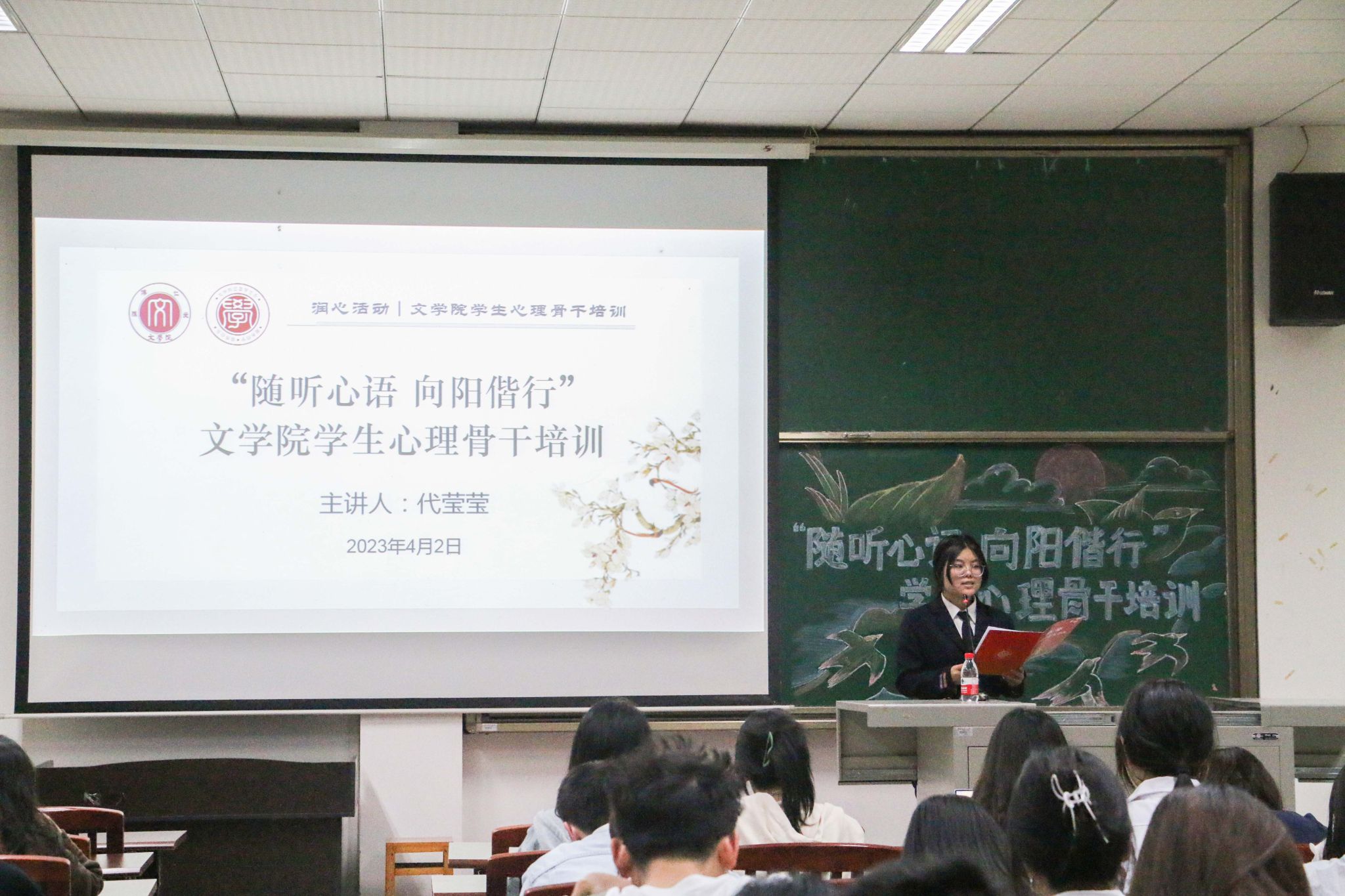 为深化“贯通式”心理育人,夯实“校-院-家-医”组织体系,强化“校-院-班-寝”四级预警协同,充分发挥学生心理骨干队伍在心理健康教育工作中的积极作用,4月2日,best365英国在线体育官网举办“随听心语,向阳偕行”学生心理骨干培训,学校心理健康与服务中心的专职教师代莹莹受邀主讲,best365英国在线体育官网全体心理委员及寝室长到场学习。