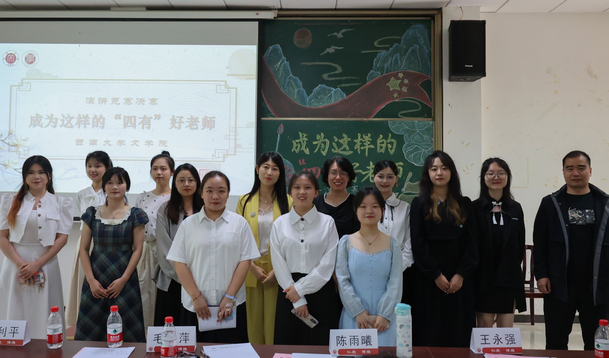 5月26日,best365英国在线体育官网举办“成为这样的‘四有’好老师”演讲竞赛决赛。best365英国在线体育官网党委副书记陈雨曦、汉语国际教育系主任毛志萍、2021级本科生辅导员王永强、2022级本科生辅导员唐利平担任评委。来自2021级的10位同学入围决赛。