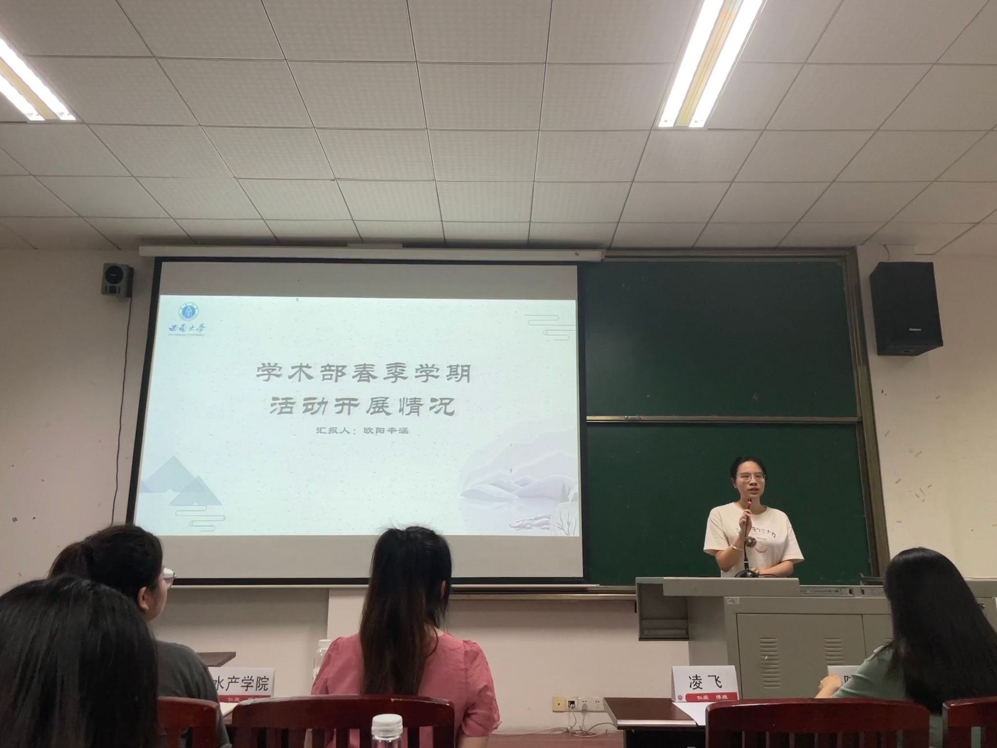 秘书处、网宣部、就业拓展部、文体部和学术部的执行负责人结合各自部门的特点,重点集中在活动举办情况上,依次对部门春季学期的工作进行了全面的总结。每个部门都直面自身存在的问题,提出了相应的优化措施,并对未来工作做出了合理的展望。