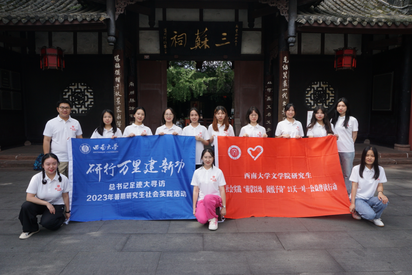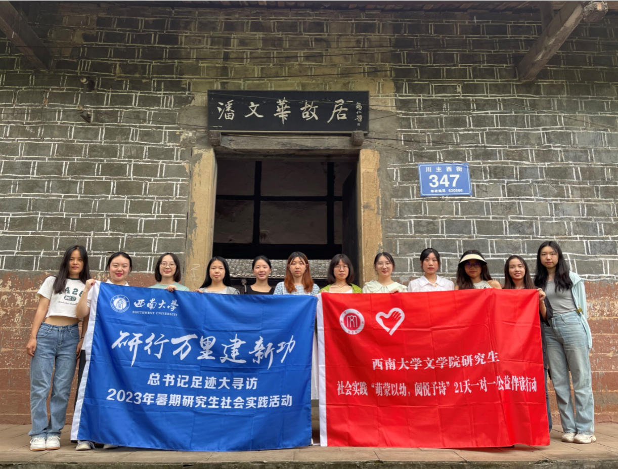 为深学笃行党的二十大精神,推动学习贯彻习近平新时代中国特色社会主义思想走深走实,西南大学动员研究生开展以“研行万里建新功”为主题的暑期社会实践活动。best365英国在线体育官网积极响应号召,在best365英国在线体育官网研究生导师曹建教授、张兴成教授,辅导员凌飞老师的带领下,于7月19日至21日组织12名研究生追寻习近平总书记考察调研的足迹,前往四川眉山开展第五届“萌蒙以幼,阅悦予诗”21天一对一公益伴读行动。本次研究生“一对一”帮扶学生阅读能力的培养计划,把“文化振兴”与“研学实践”相结合,力求深化定向结对互动、强化育人目标引领,帮助乡镇地区学生养成良好的阅读习惯,助力仁寿县文宫镇文化振兴。同时,三苏祠研学活动培养了同学们的核心人文素养与精神品质,激励她们挺膺担当,以更好落实“时代新人铸魂工程”。