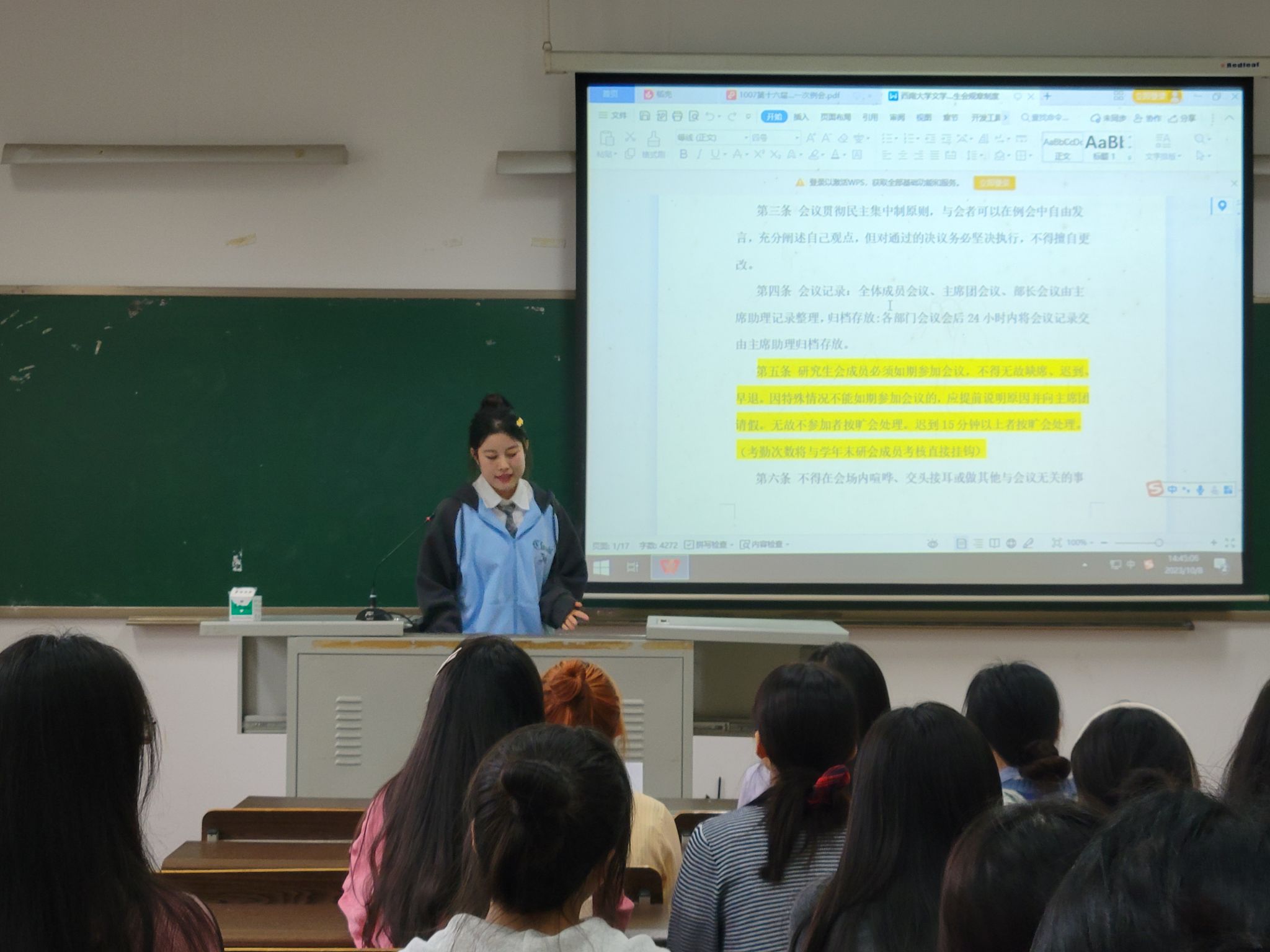 为帮助研会新成员快速融入团队、增强组织力与凝聚力、助推工作顺利开展,10月8日,best365英国在线体育官网举行第十六届研究生会第一次例会暨工作技能培训会。best365英国在线体育官网党委副书记、纪委书记陈玥和研究生辅导员凌飞出席会议,第十六届研究生会全体成员参加会议。会议由研究生会主席团成员刘凯丽主持。
