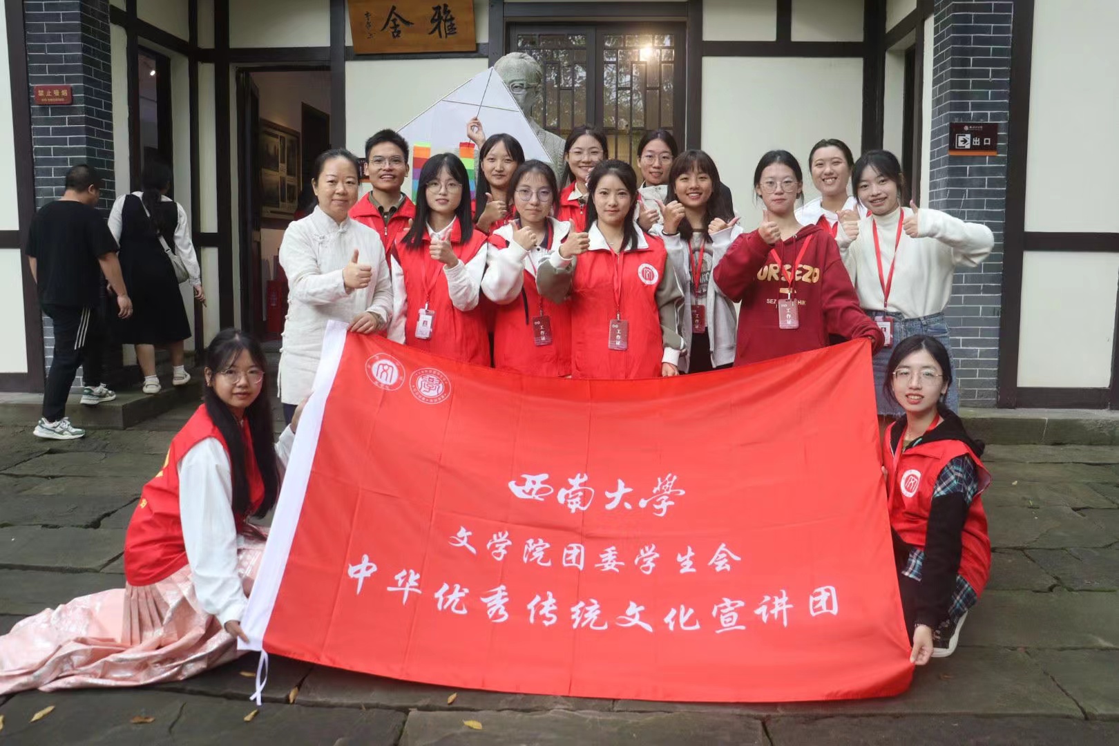 岁岁重阳,今又重阳。10月21日,best365英国在线体育官网在梁实秋故居雅舍书院举办“九九重阳日,欢放纸鸢还”中华优秀传统文化宣讲会,宣讲团成员及北碚部分小学生参与本次活动。