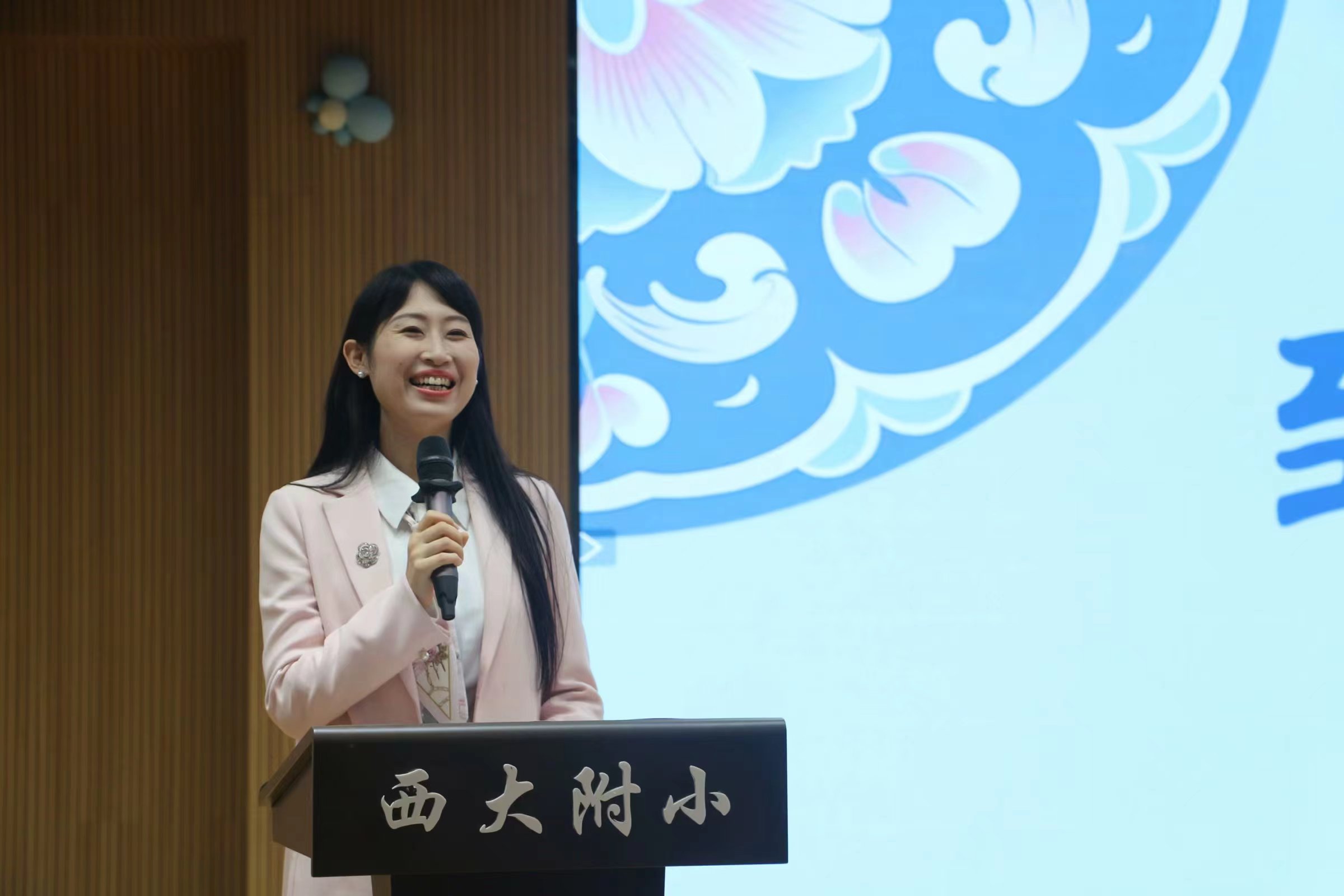 陈雨曦副书记表示,要将传统文化从古籍中请出来,打造一堂有温度有活力的文化课,在寓教于乐中扣好美育这颗扣子。西南大学附属小学党委书记张旺指出,要多让学生在中华优秀传统文化的浸润和熏陶中,感受、热爱、传承中华传统文化,肯定了“大手拉小手"系列活动的重要价值。随后,宣讲人身着精美的汉服,以刺绣纹样为例,介绍不同形制的汉服和纹饰的寓意。情景剧《穿越千年,我又寻到你》中穿插了古风歌舞表演《大鱼》及古典乐器柳琴演奏,点燃了孩子们的热情,现场气氛活跃。最后,学生们回到教室在宣讲团成员的细心指导下认真绘制汉服纹样并分享自己的画作。活动受到西南大学附属小学师生一致好评。