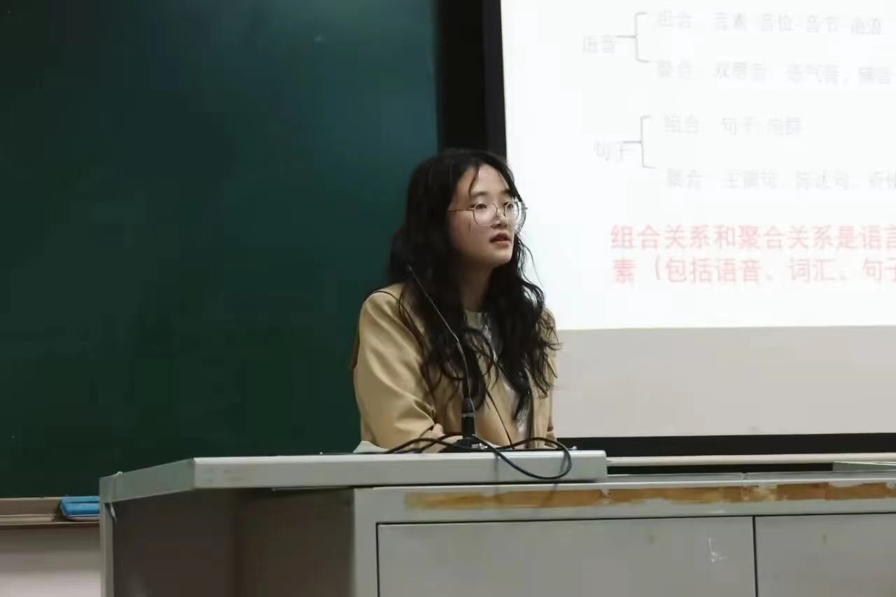 在28日的活动中,黄庭颍同学围绕文学本质论和“文学性”的内涵进行了详细解答,分析了美学本质等重要名词的含义。在4日的活动中,甘知鑫同学主要讲解了语言系统中的组合关系和聚合关系,对如何有效记忆辅音的发音部位和发音方法进行指导。最后,赵秉珠同学从女性主体视角和叙事模式双重维度展开,分析并总结造成《孔雀东南飞》悲剧结果的三个原因,对文本进行了具体解读。