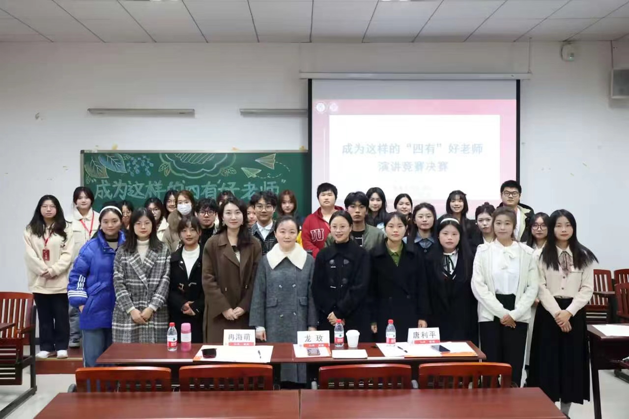 12月1日,学院举办“成为这样的‘四有’好老师”演讲竞赛决赛。学院龙玫老师、2020级辅导员冉海萌、2022级辅导员唐利平担任评委。2022级汉语言文学(师范)专业的六位同学入围决赛。