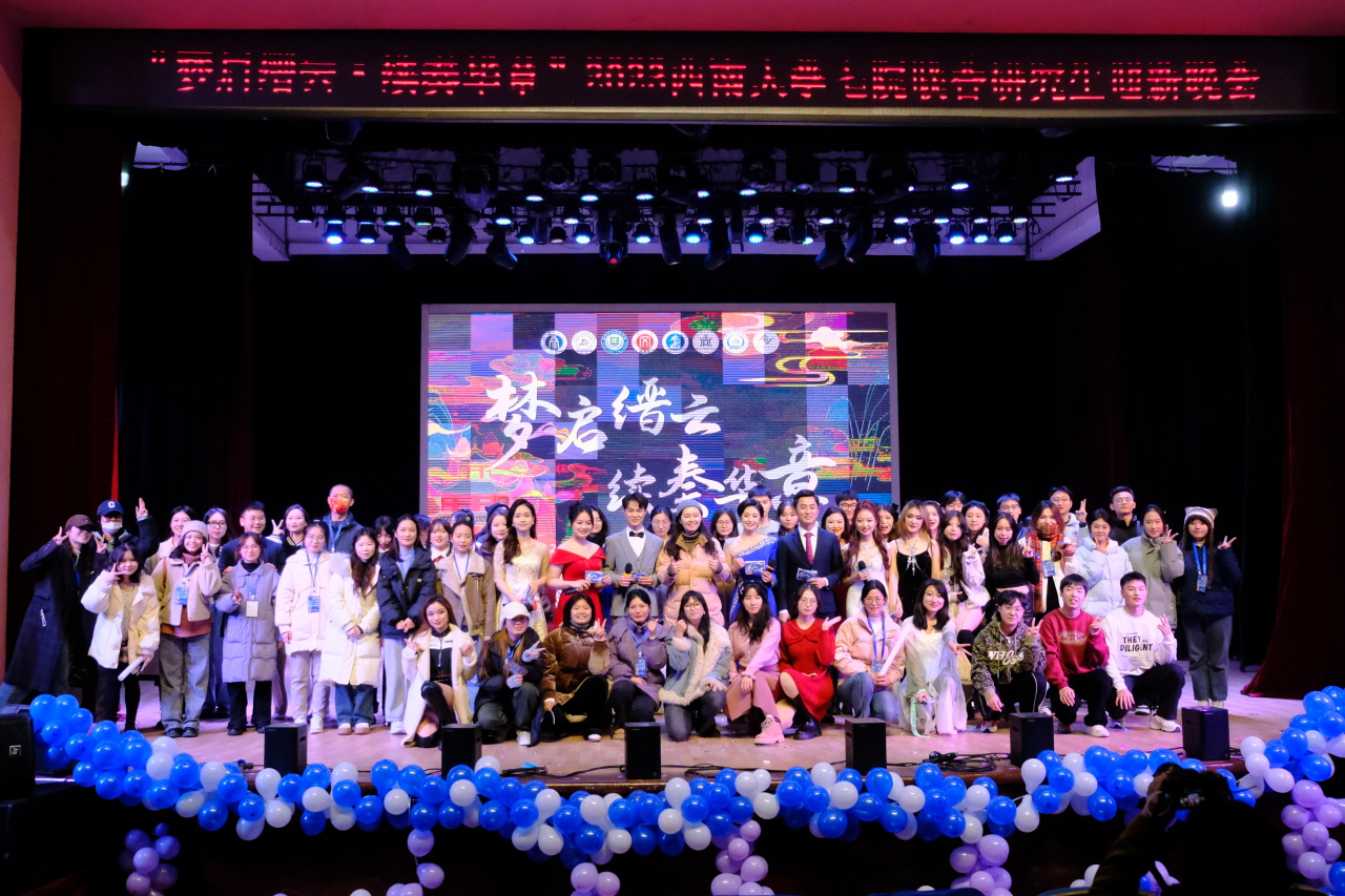12月18晚,由best365英国在线体育官网、国际学院、经济管理学院、数学与统计学院、外国语学院、新闻传媒学院和资源环境学院联合举办的“梦启缙云·续奏华章” 2023年西南大学七院联合研究生迎新晚会在光大礼堂举办。best365英国在线体育官网研究生辅导员凌飞出席,共有33名best365英国在线体育官网演职人员出演,包括121名best365英国在线体育官网同学在内的七院研究生观众参加了此次晚会。