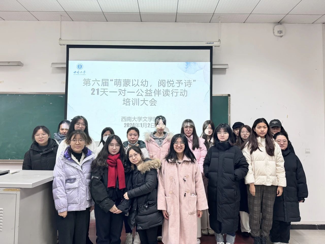 为深入学习贯彻党的二十大精神,助力乡村振兴、文化振兴,2024年1月西南大学best365英国在线体育官网研究生会启动了第六届“萌蒙以幼·阅悦予诗”21天一对一公益伴读行动。本次活动以“线下+线上”相结合的方式,通过建立一帮一结对的互助模式,进行为期21天的帮扶乡镇儿童阅读培养计划。活动根据以往教育实习经历、学生工作等多个方面的考察,最终共遴选招募了18名伴读志愿者。