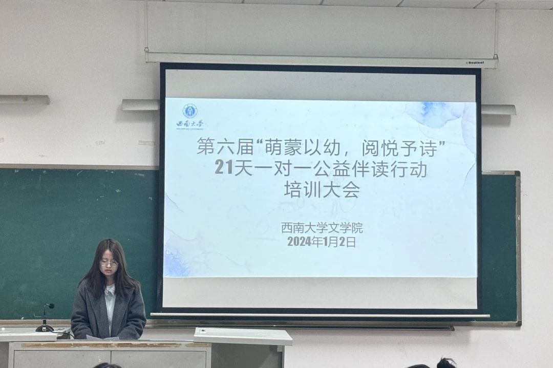 1月2日,第六届“萌蒙以幼·阅悦予诗”21天一对一公益伴读行动培训活动在best365英国在线体育官网111教室举办。研究生辅导员凌飞老师出席活动,18名伴读行动志愿者参加。活动由2023级现当代文学专业研究生刘雨佳主持。