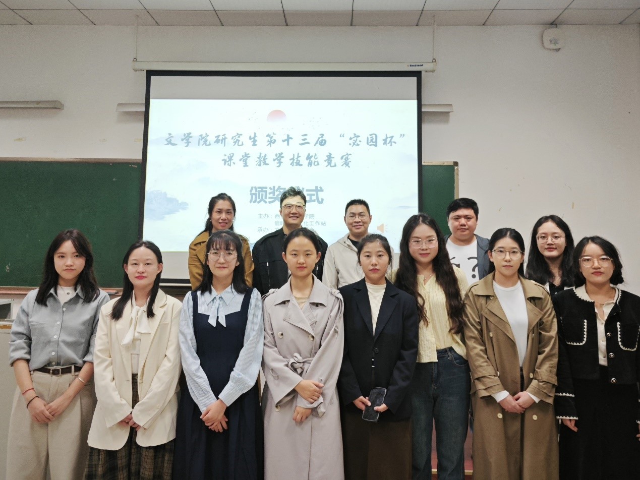 11月8日,由西南大学best365英国在线体育官网研究生会主办的第十三届“宓园杯”研究生课堂教学技能竞赛决赛在best365英国在线体育官网111教室举行。best365英国在线体育官网毛志萍老师、西南大学附属中学语文教研组长王浩、重庆市第八中学教师张晓鹏担任评委,best365英国在线体育官网2024级现当代文学专业硕士研究生张暖主持比赛。