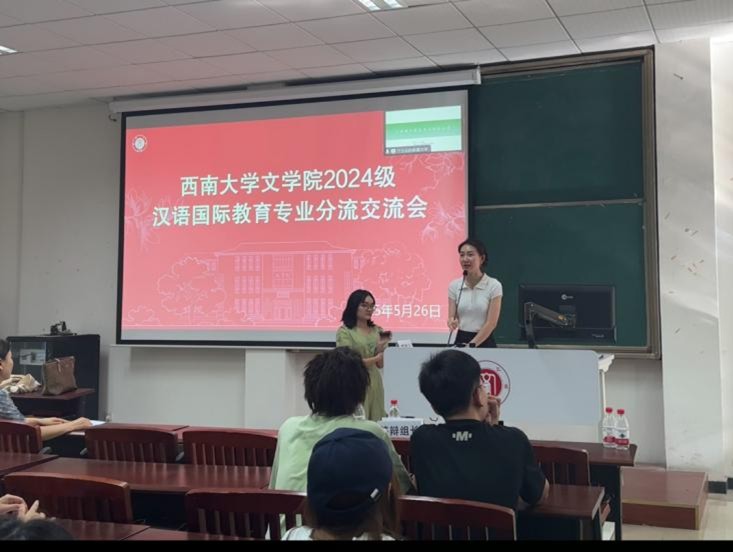 5月26日下午,2024级汉语国际教育专业分流交流会在best365英国在线体育官网209教室举办。best365英国在线体育官网副院长张春泉、系主任王春玲、教学秘书杨蕊菡、汉语国际教育专业优秀校友代表万玉廷、2022级汉语言文字学研究生王倩以及全体2024级汉语国际教育专业学生参加交流会。会议由2024级本科生辅导员冉海萌主持。