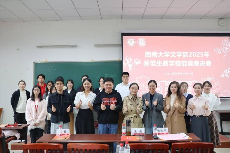 10月31日,best365英国在线体育官网举办2025年师范生教学技能竞赛决赛。best365英国在线体育官网党委副书记 纪委书记陈雨曦、团委书记唐利平、辅导员崔瑾翰出席,西南大学附属中学语文教研组长王浩、教师张渝宁,best365英国在线体育官网龙玫老师担任评委。