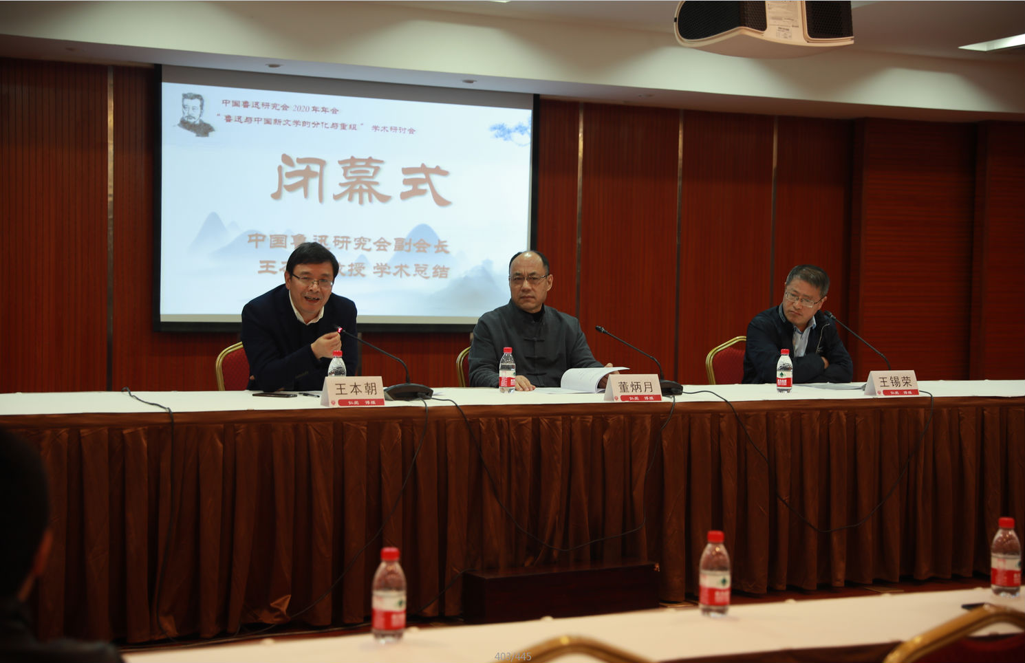 会议闭幕式由中国鲁迅研究会副会长王锡荣教授主持,中国人民大学宋声泉副教授、上海鲁迅纪念馆李浩研究员、中国社会科学院李哲教授代表三个小组分别做了总结汇报。最后,鲁迅研究会副会长王本朝教授对此次鲁迅研究会作了学术总结,他概括了此次会议在“鲁迅作品再解读”“鲁迅思想新阐释”“鲁迅史料新考辩”以及“鲁迅研究新维度、新范式”等问题上所形成的观点,认为此次大会对鲁迅研究的推进是显著而突出的。研究会常务副会长、秘书长董炳月教授作闭幕发言,他高度评价了此次会议所涉鲁迅研究话题的深度与广度,认为此次会议在鲁迅史料的挖掘与研究方法的探索方面均有重大收获。