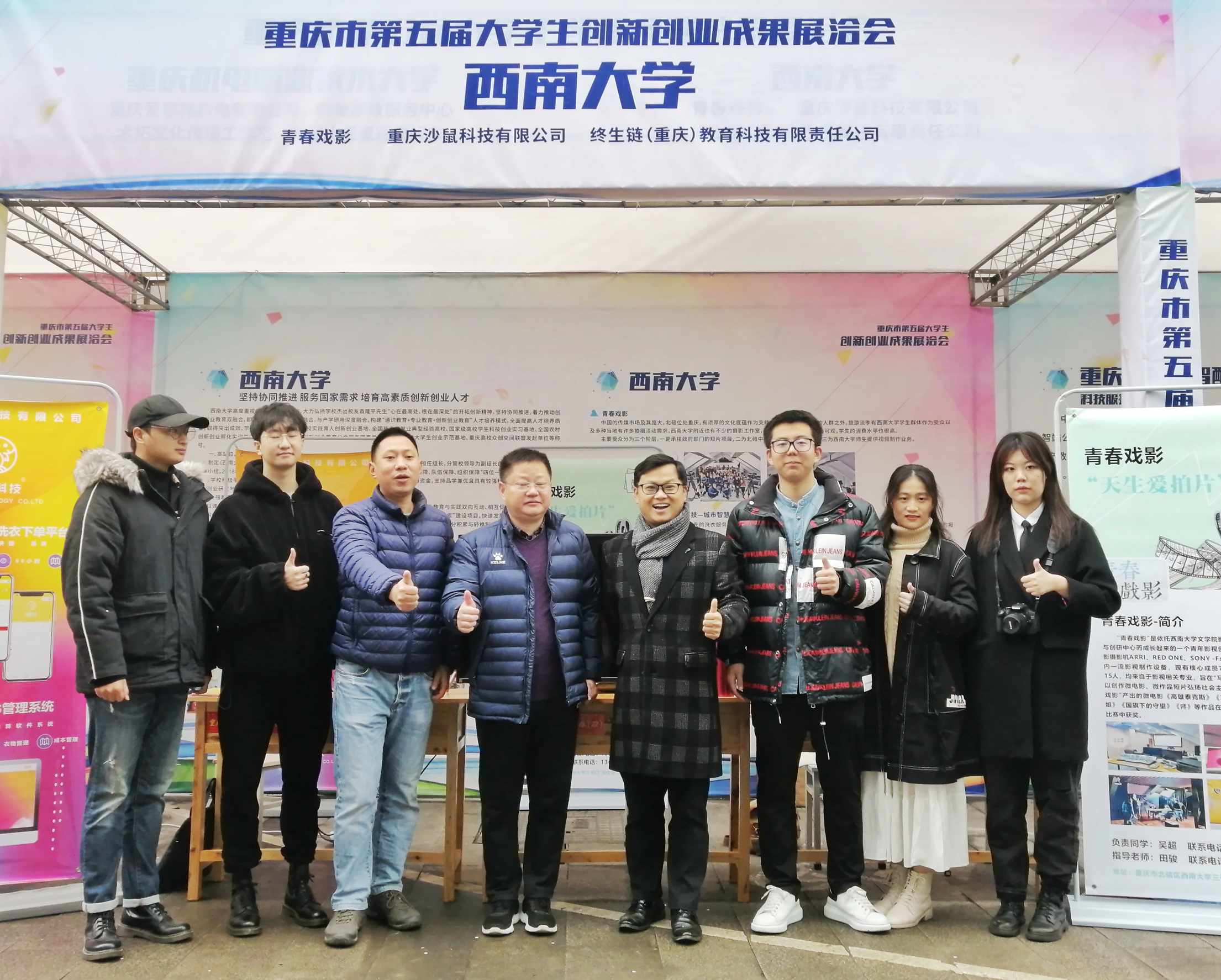另悉,11月24日,第五届大学生创新创业成果展洽会在西部(重庆)科学城大创谷召开,本次成果展由市教委、市科技局、市经信委、市人社局、市市场监管局、市税务局、广电集团、区政府共同主办。由学院影视艺术系田骏老师带队的“青春戏影”团队代表西南大学大学生创新创业团队参展。展洽会共有来自44所高校的118个项目参展,涵盖学生自主创业项目、教师科研项目和师生共创项目。10余家社会企业及投资机构,近60位企业家、投资机构代表参与指导、嫁接资源,吸引全市近5000名高校师生到场观摩交流。