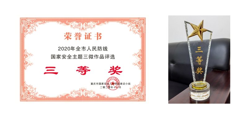 11月12日,重庆市国家安全人民防线建设小组在全市防线单位开展了2020年全市人民防线单位国家安全主题“微电影、微视频、微动漫”比赛评选结果名单公布,全市共有二十余家防线单位30余部作品参赛,最终评选出一等奖1部、二等奖2部、三等奖3部。由西南大学人民防线建设小组选送,学校党政办公室、党委保卫部联合我院戏剧影视文学专业“青春戏影”创新创业团队制作的微视频《国安我在线》获三等奖。获奖作品围绕国家安全主题,用镜头语言展示了他们对国家安全维护、人民防线建设工作的理解和诠释。