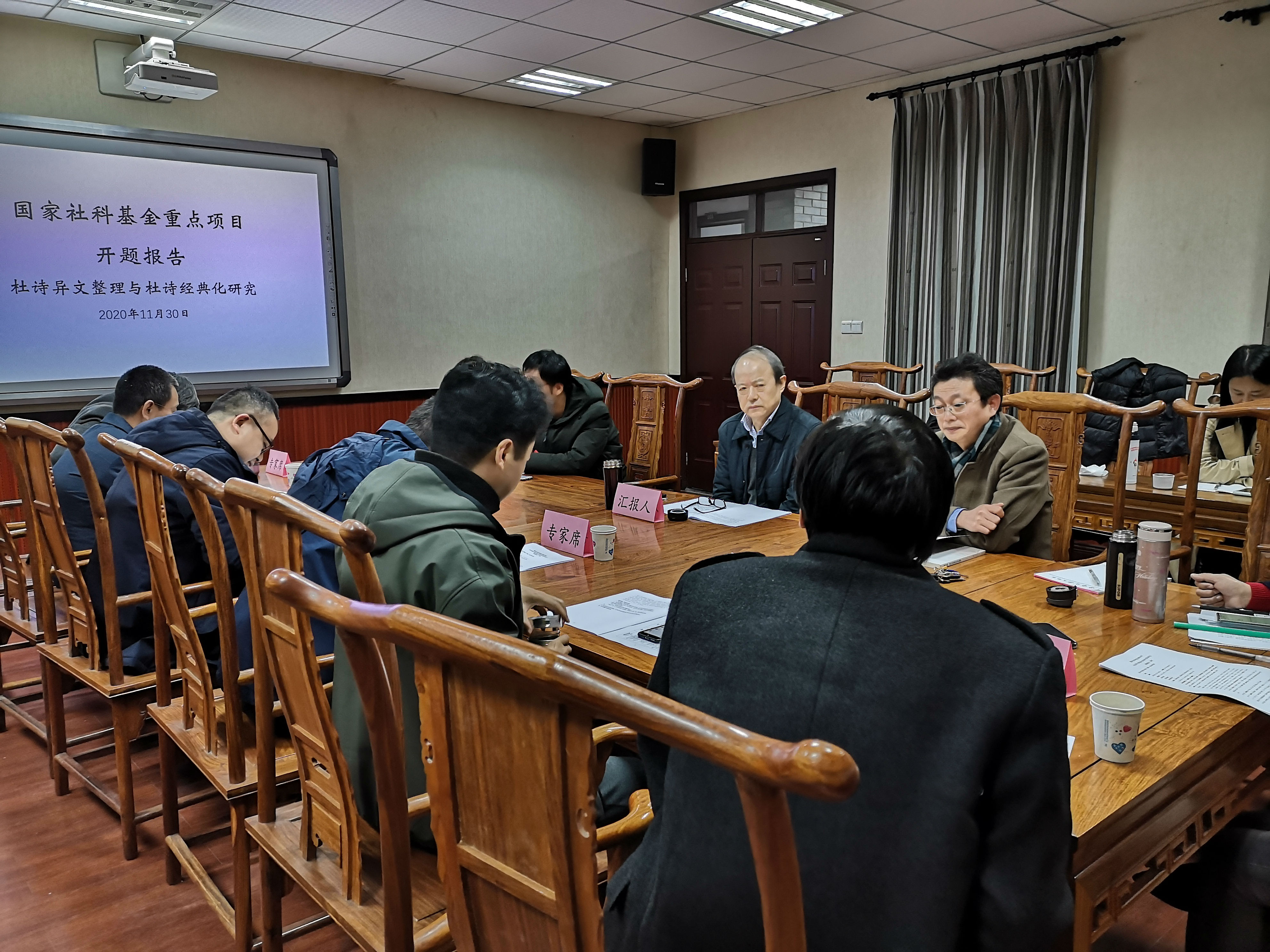 课题负责人刘明华教授从选题依据、研究动态、研究内容、总体框架、主要目标、重点难点、思路方法、研究计划、创新之处、预期成果等方面对课题作了详细的汇报,并提交了作为最终成果之一的《宋本杜集异文汇校》样稿(征求意见稿),希望专家们从总体思路和体例确定等方面多提宝贵意见。