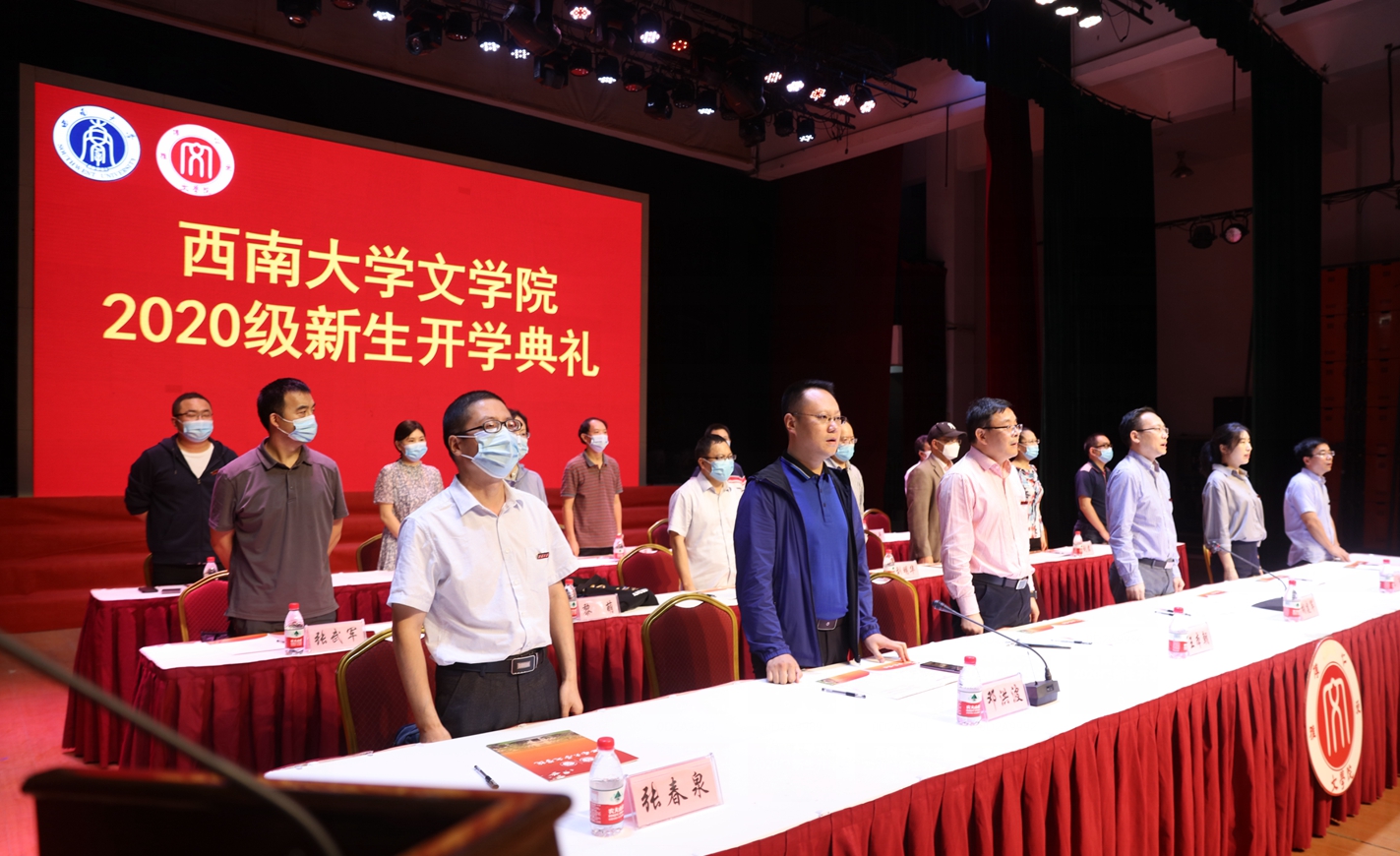典礼最后,全体师生起立唱起《西南大学校歌》,在激昂豪迈的旋律中,best365英国在线体育官网2020级新生开学典礼圆满落幕。