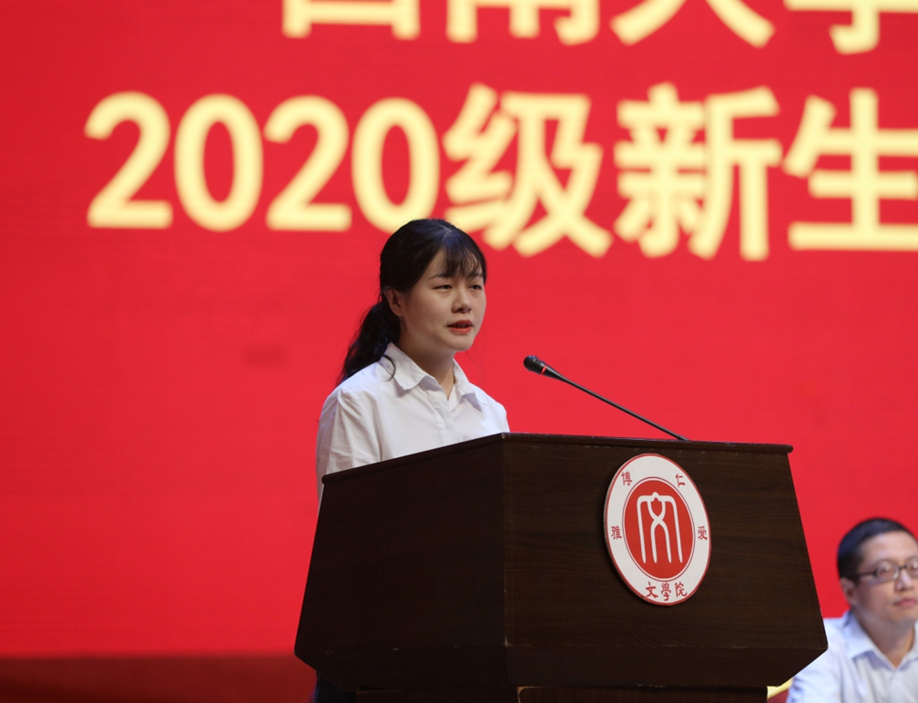 新生代表2020级本科生吴婧卓同学讲述了今年疫情背景下参加高考的不凡青春,分享了初入校园时感受到的best365英国在线体育官网厚重温情。吴婧卓同学表示,我们要“博”览群书,展现文“雅”气质,勇担时代的责任,练就过硬本领,为实现中华民族的伟大复兴贡献青春力量。