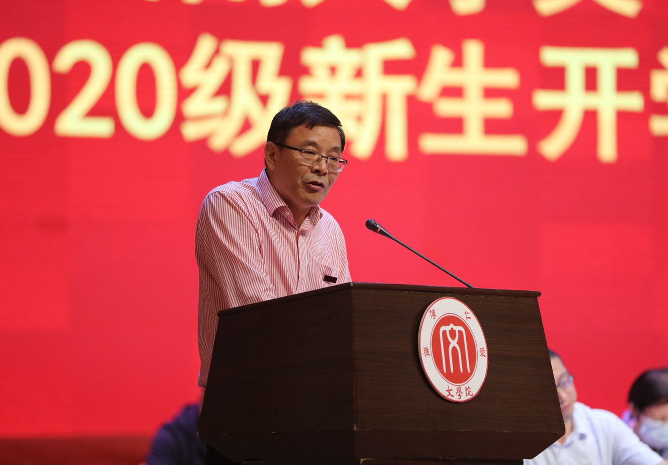 院长王本朝教授发表致辞并代表全院师生员工向新生们表示欢迎和祝贺。他指出,同学们即将开启一段新的人生征程,best365英国在线体育官网也将是你们人生的加油站。随后,王本朝院长结合自身从教30年的经历向新生们提出三点希望:一是“立志高远”。不同目标,就会有不同的追求,也会有不同的大学生活。要有理想、有目标,做一个有情怀、有独立思想、有审美趣味、有现代思维的人;二是“脚踏实地”。文学是思想的结晶,是语言的艺术,是生命的象征。不要恃才傲物、自我中心、华而不实,要学会理解人、包容人、尊重人;三是“以读书为乐”。要丰富自己的生活、精神和情感。多读中外文学经典和思想文化名著,在阅读中积累知识,养成审美能力,学会写作技巧。王本朝院长勉励大家不负韶华,珍惜大学时光,给未来留下充实而美好的回忆。
