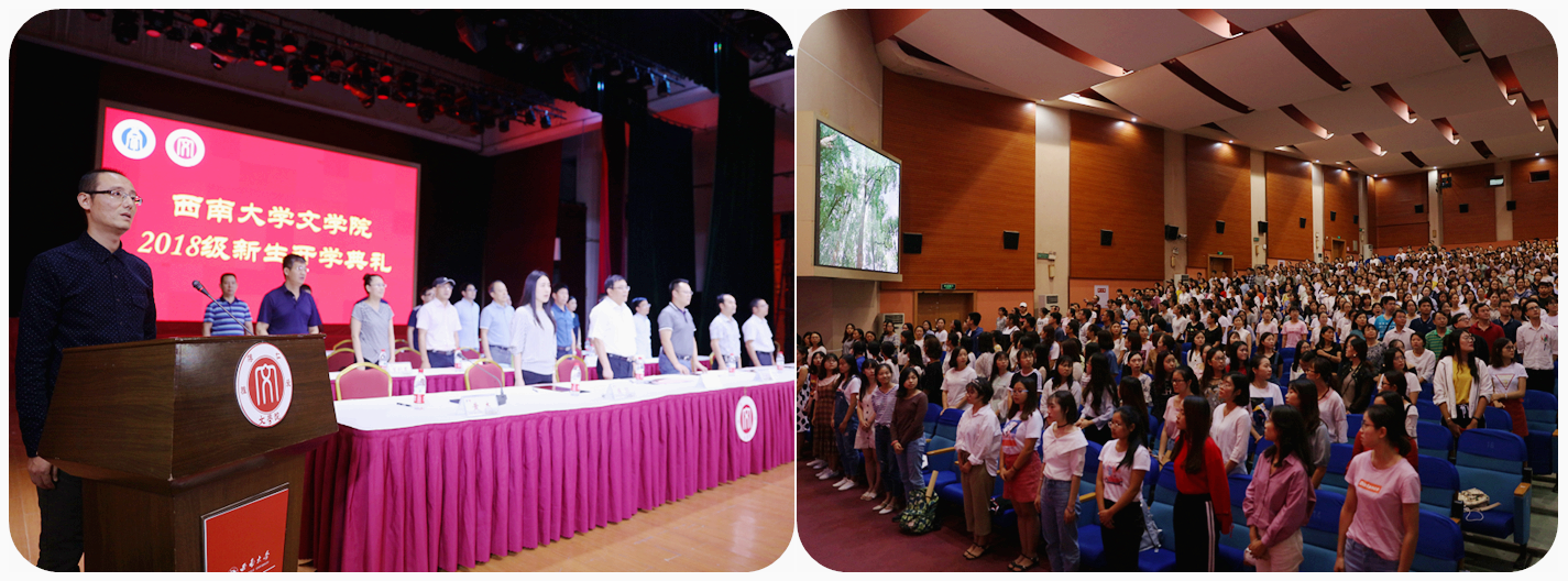 典礼最后,全院师生唱起《西南大学校歌》,在激昂豪迈的旋律声中,best365英国在线体育官网2018级新生开学典圆满结束。
