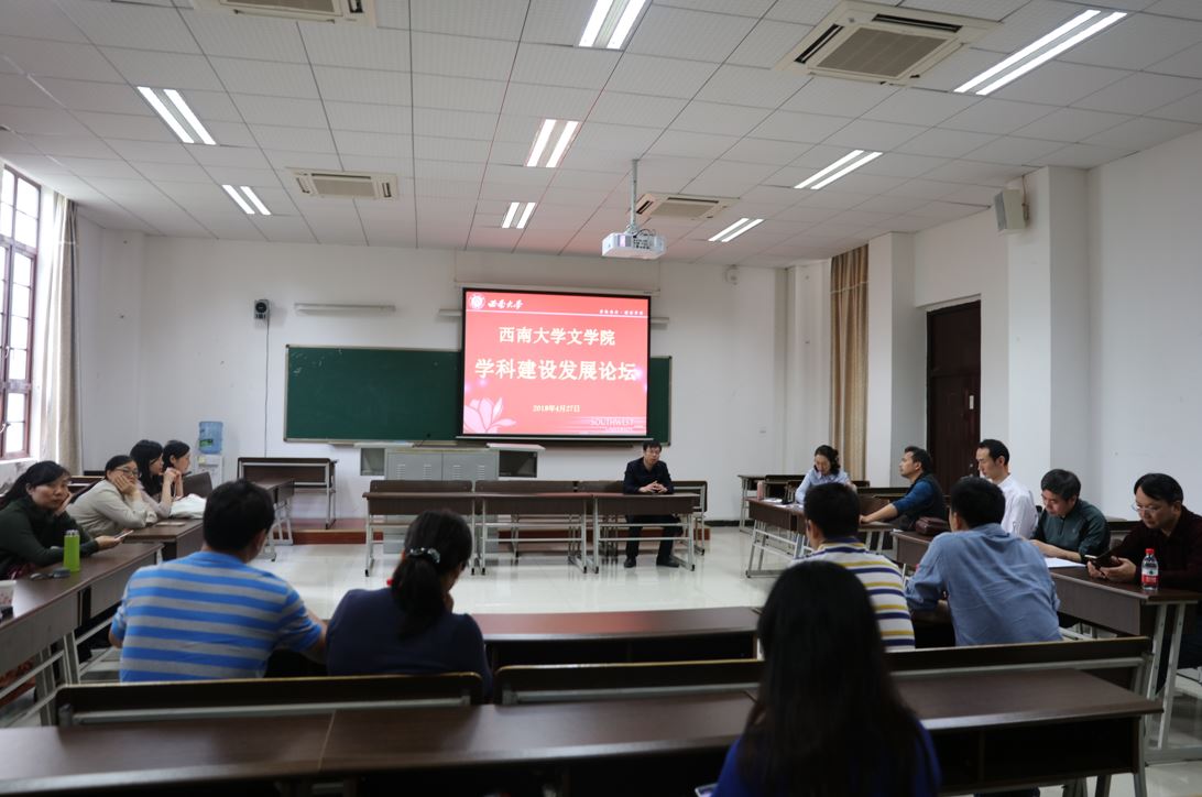 随后,王本朝院长以“把握机遇·找准定位—为振兴一流中文学科而努力”为题做论坛报告,从学院学科建设思路、学科建设基础与成效、存在的问题、未来发展思路等方面与全院教职员工进行了交流。王本朝院长表示,学科建设整体思路是要大力打造有实力的人才队伍,做出标志性的成果,营造良好的学术氛围,加强对各类人才的培养。要继续做大做强学科人才队伍,进一步增强学科的核心竞争力,加强国际合作与发展,提高科研产出率,进一步扩大专业影响力,加强学科高平台建设,建设好汉语言文学、戏剧影视文学本科专业,打造一批高质量的核心精品课程,建设好学院博雅创新实验班,扩大研究生优质生源比例。王本朝院长强调,学科建设不仅是人才培养、科研整体实力的表现,更是学院之未来、文脉之延续,希望学院全体教职员工为之共同努力、奋斗。