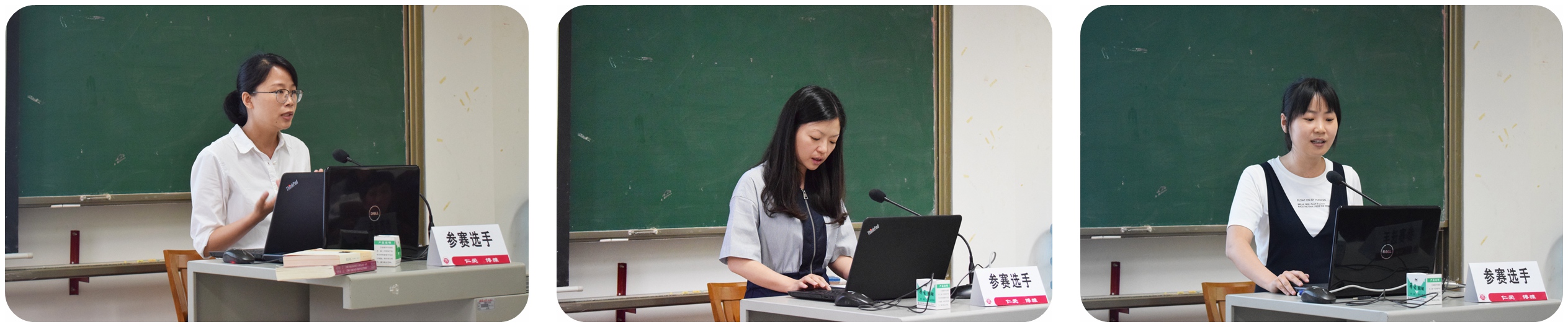 首先上场的是张冰老师,她所讲授的课程是《文艺批评的标准》并从文艺批评的标准是文艺批评的核心切入,从政治标准、艺术标准、思想标准几个方面讲解了文学批评标准的当代变迁。邝明艳老师带来课程《翻译研究》,通过翻译实践和翻译研究的区别点出翻译文学的价值所在并通过从比较文学的观点“翻译研究是技术还是艺术”发问,指出翻译是一门艺术。张纯静老师参赛课程《应用文写作》,通过鲜明生动的举例,清晰凝练的介绍了应用文在日常生活中的直接实用价值。刘洁老师带来课程《三国演义的悲剧意蕴与正统主题》,课程由一曲《临江仙》进入主题,通过分析史料记载讲解了《三国演义》中蜀魏正统倾向的体现,从历史层面和民间层面道出《三国演义》宿命式悲剧的结局。王小惠老师通过文本细读的方式分析了老舍作品《离婚》中的人物形象,层层深入,循序善诱的讲课方式使整节课连贯流畅,生动精彩。