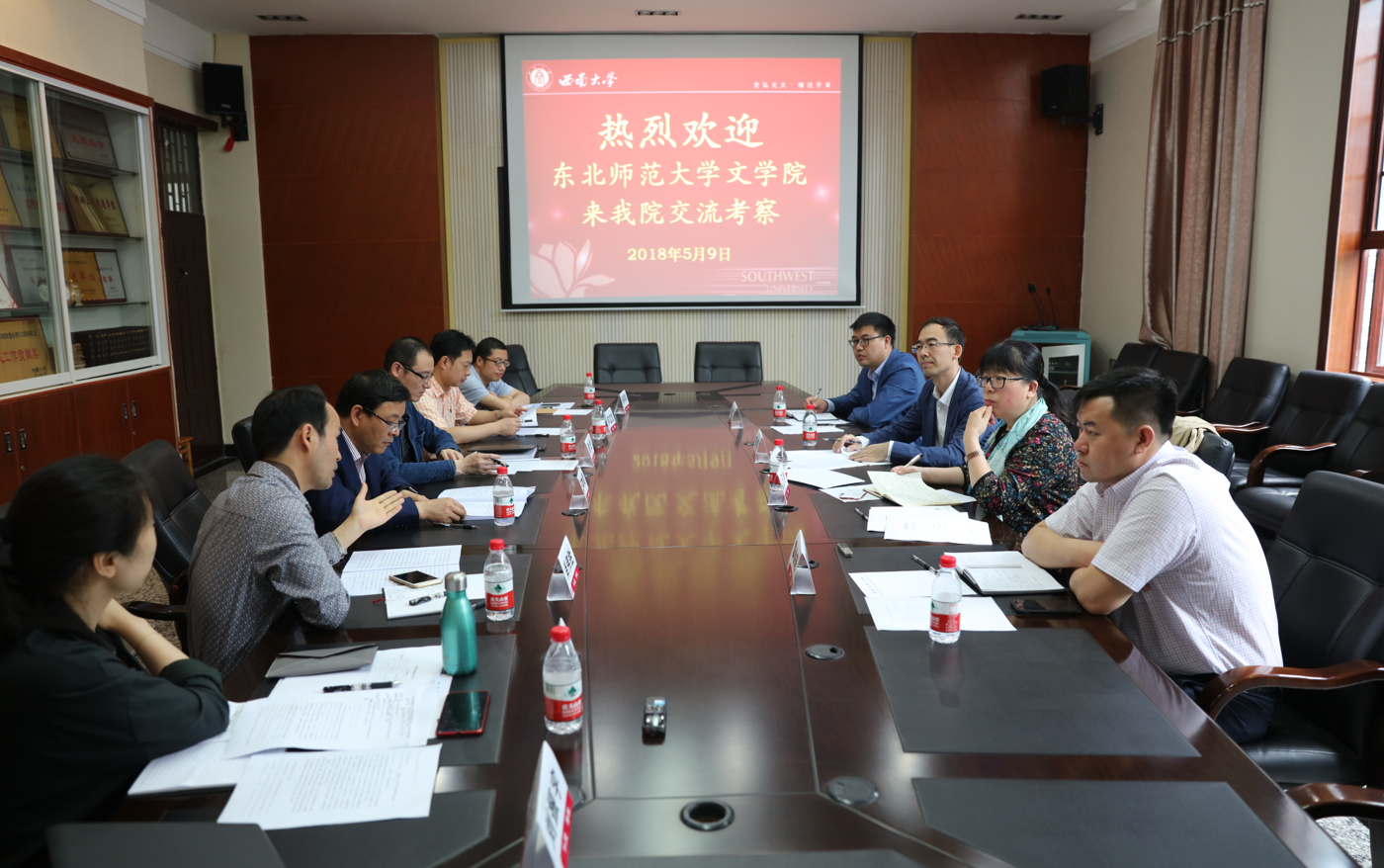 5月9日上午,东北师范大学best365英国在线体育官网院长高玉秋、副院长彭爽、副院长富会来、副书记兼副院长赵建立一行来我院交流考察。best365英国在线体育官网院长王本朝、院党委书记黄杰、副书记何定龙、副院长肖伟胜、副书记陈玥、副院长张春泉出席交流会,会议由best365英国在线体育官网党委黄杰书记主持。