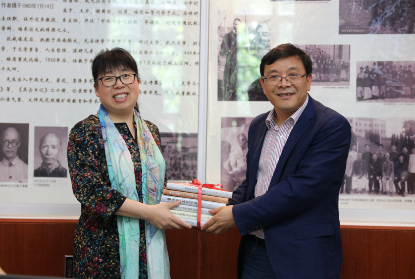 会后,东北师范大学高玉秋院长一行参观了学院教学楼,王本朝院长代表学院向东北师范大学best365英国在线体育官网赠送书籍。