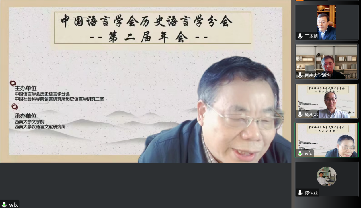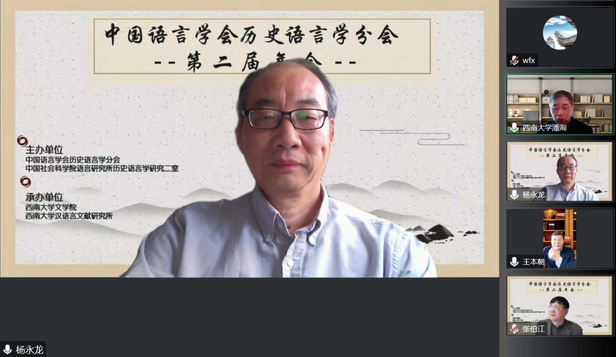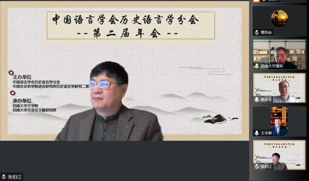 受疫情影响,本次会议采用线上方式举行,来自中国社会科学院、北京语言大学、中国人民大学、北京大学、首都师范大学、北京师范大学、北京外国语大学、南开大学、浙江大学、南京大学、兰州大学、复旦大学、中山大学、四川大学、武汉大学、安徽师范大学、百色学院、南京中医药大学、浙江财经大学、天津科技大学、华南农业大学、江西师范大学、重庆师范大学、天津师范大学、海南师范大学、闽南师范大学、上海师范大学、浙江师范大学、湖北师范大学、辽宁师范大学、广西大学、吉首大学、三峡大学、湖北大学、烟台大学、内蒙古大学、中央民族大学、云南民族大学、西南大学等40余所高校和科研单位的240余名专家、研究生线上参会。