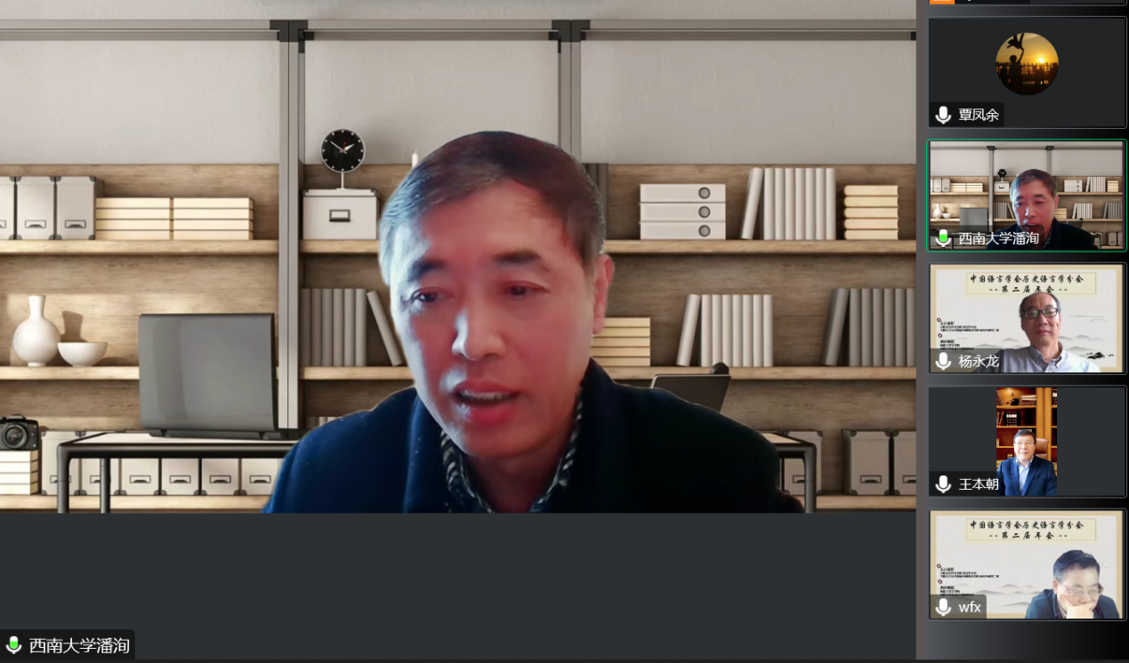 11月19日上午8:30,研讨会顺利开幕,开幕式由历史语言学分会副会长兼秘书长、中国社会科学院语言研究所历史语言学研究二室主任杨永龙教授主持,中国语言学会会长、中国社会科学院语言研究所所长张伯江研究员、西南大学党委副书记潘洵教授、历史语言学分会会长吴福祥教授和西南大学best365英国在线体育官网院长王本朝教授先后致辞。