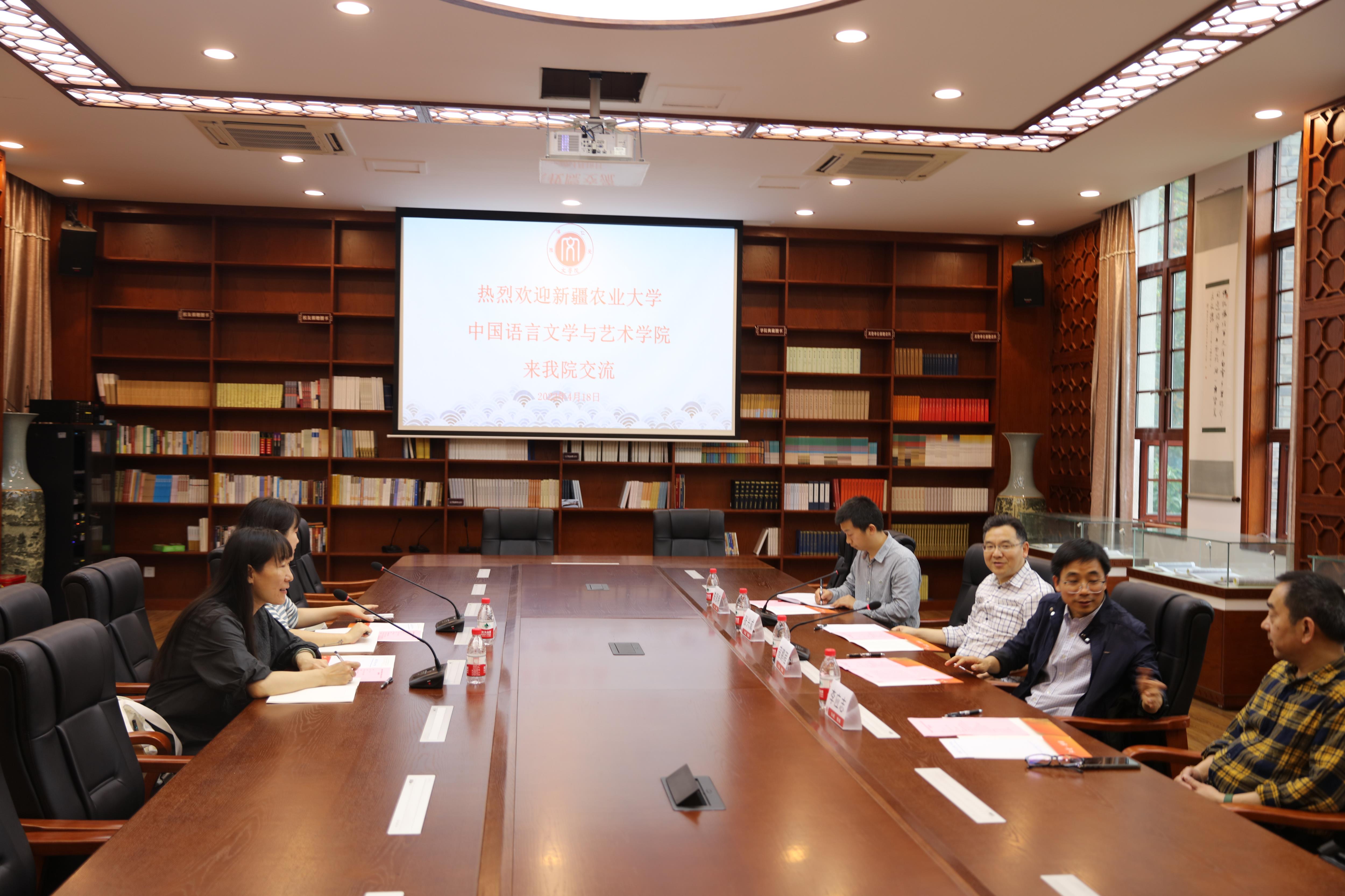 白玲副院长对新疆农业大学中国语言文学与艺术学院的发展历史、优势学科建设、人才引进政策、人才培养等方面进行了介绍。她表示,中国语言文学与艺术学院以服务党的治疆方略为出发点,助推了国家通用语言文字教育、普及,夯实了“双语”人才培养。希望双方加强合作,为推动西部高等教育在时代浪潮中砥砺奋进做出更大贡献。