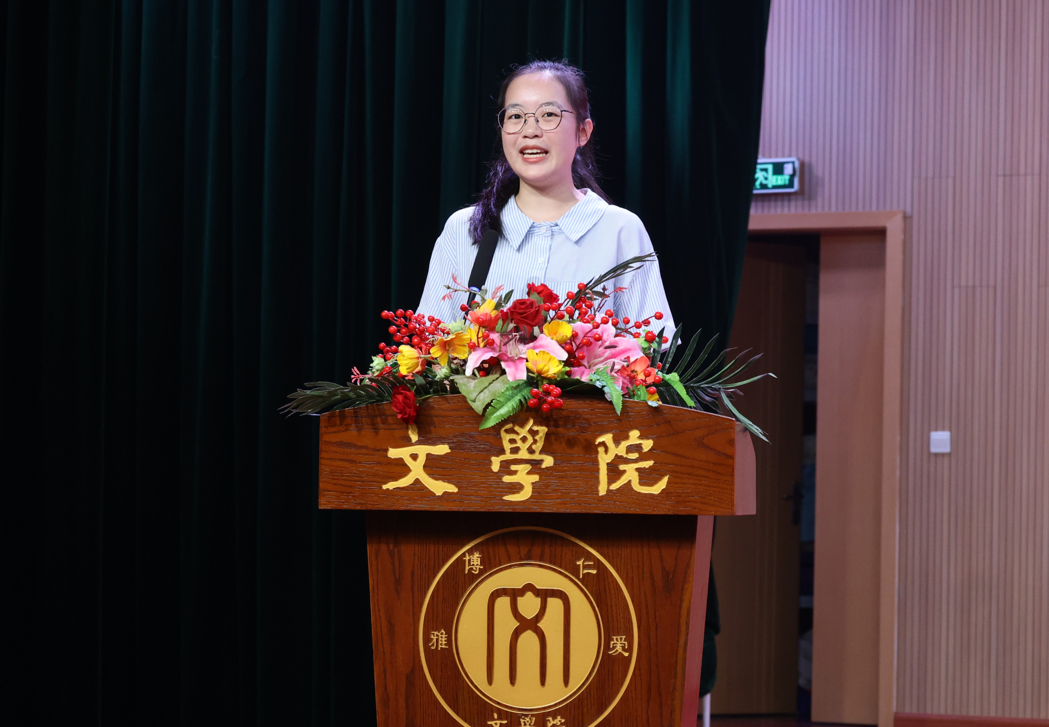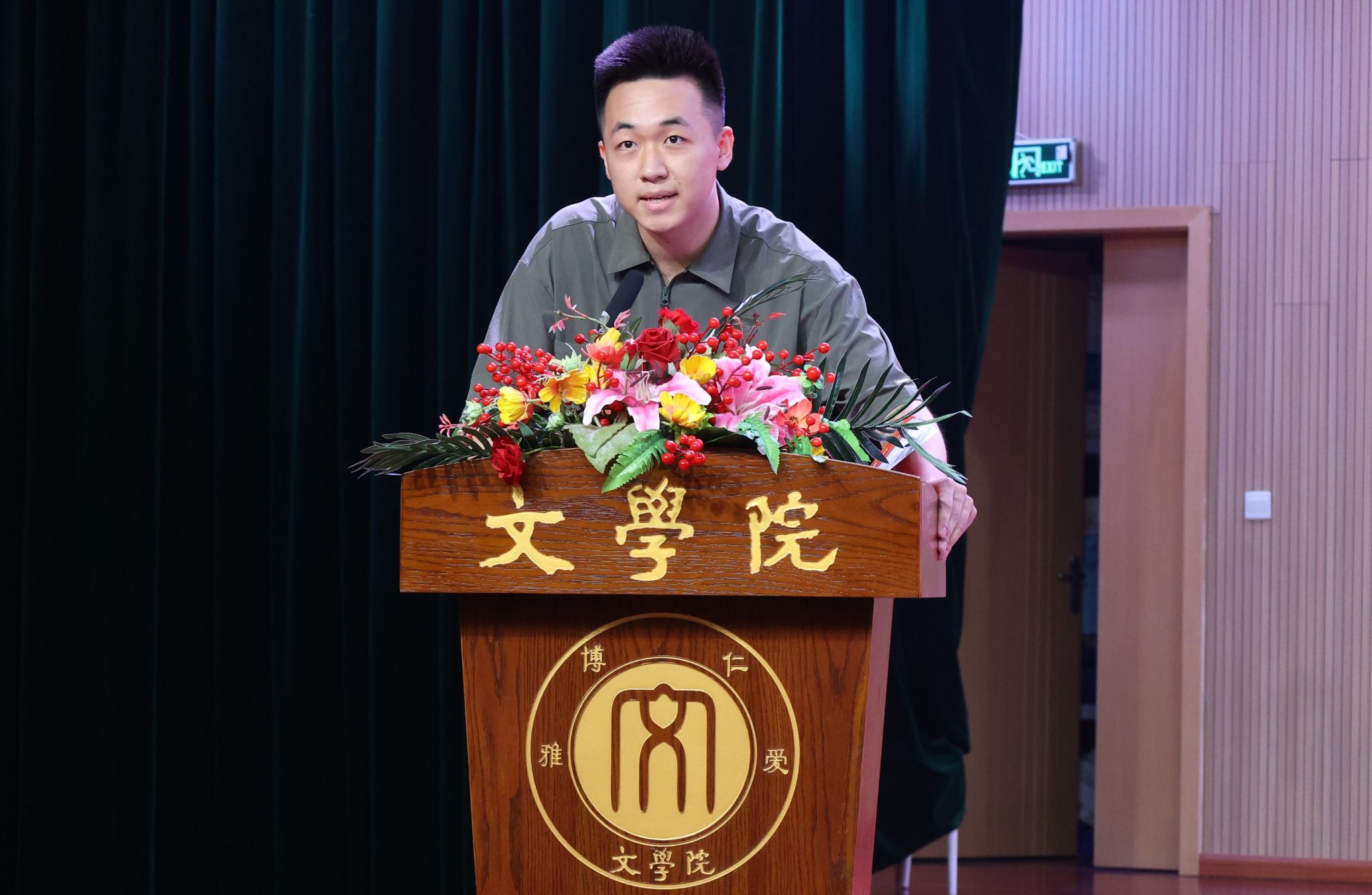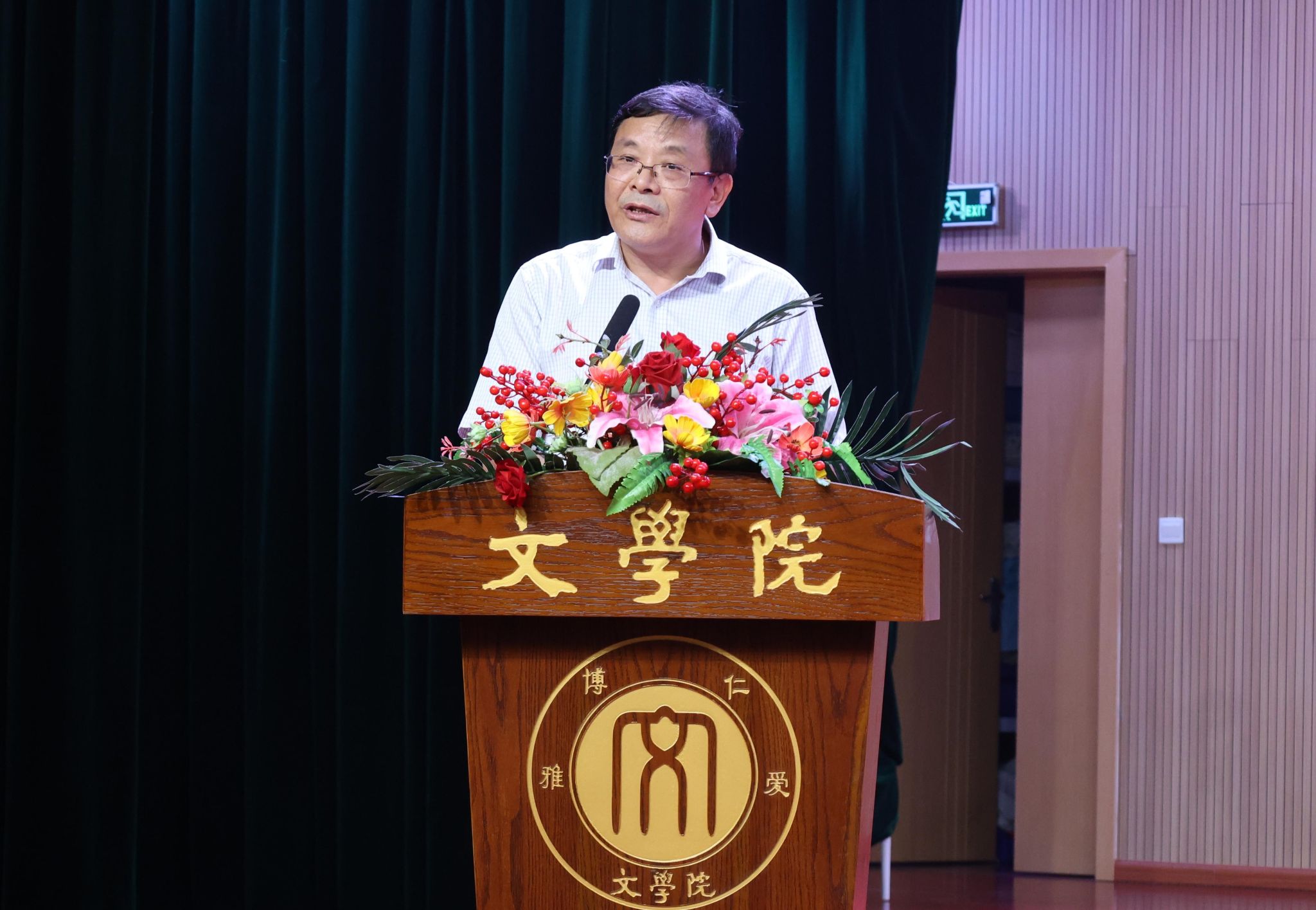 胡建军书记主持时指出,希望大家恪守“仁爱·博雅”的院训精神,承续文脉,勃兴文气,成长为担当民族复兴大任的时代新人,书写无愧于新时代的多彩华章。