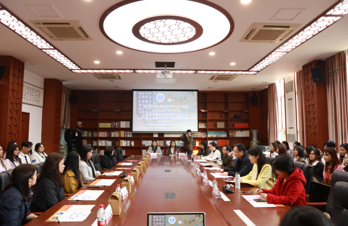 11月20日,泰国孔敬大学校长助理阿查拉婉·托帕娜姆率孔敬大学理事会代表团一行来到best365英国在线体育官网看望两校联合培养的泰国留学生,并与本院师生代表亲切座谈。