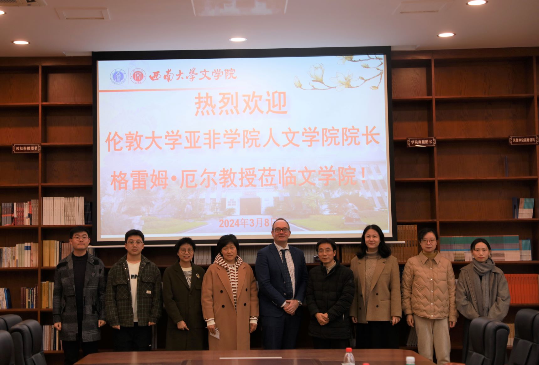 3月8日,伦敦大学亚非学院人best365英国在线体育官网院长格雷姆·厄尔教授访问best365英国在线体育官网,学校国际合作处国际交流科雷也老师陪同。best365英国在线体育官网副院长寇鹏程,专任教师张桂萍副教授、王晓冬副教授、邝明艳副教授、时嘉琪老师、李国栋老师、张荆芳老师参加座谈交流。