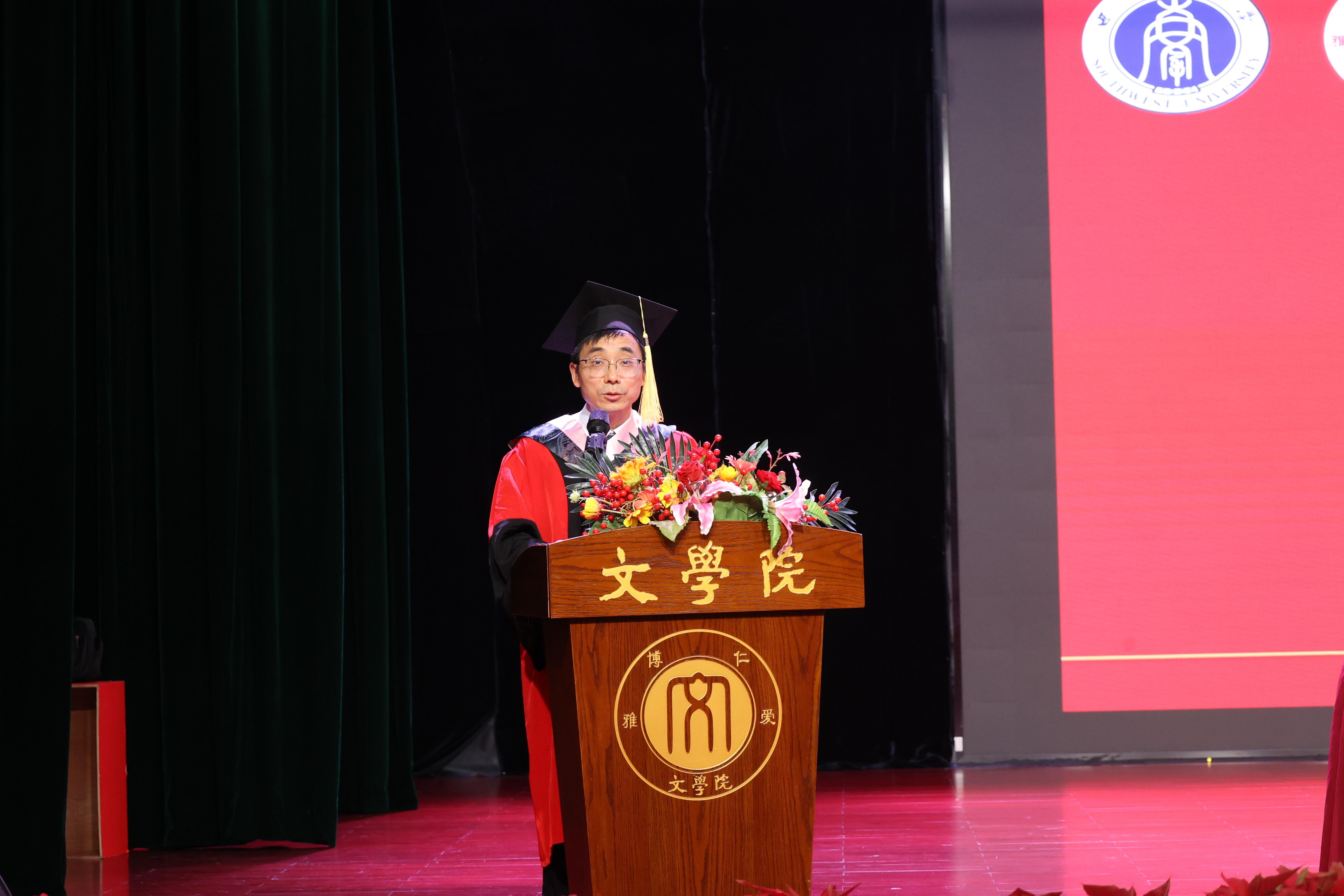 王本朝院长向全体毕业生完成学业、迈向新的人生旅途表示祝贺。并向全体毕业生提出三点期许:第一,始终不忘人生理想,真诚为人、踏实做事,做对社会有贡献的人。第二,长期坚持读书学习,将对社会、文化和人性的敏锐感受和理性思考转化为工作能力。第三,不断塑造生命韧性,遇到顺境,不迷失自我;身处逆境,不自我否定。他希望毕业生们继续保持多读书、勤写作、善思考的best365英国在线体育官网优良传统,坚定地走好人生道路,成为挺拔的文学人。