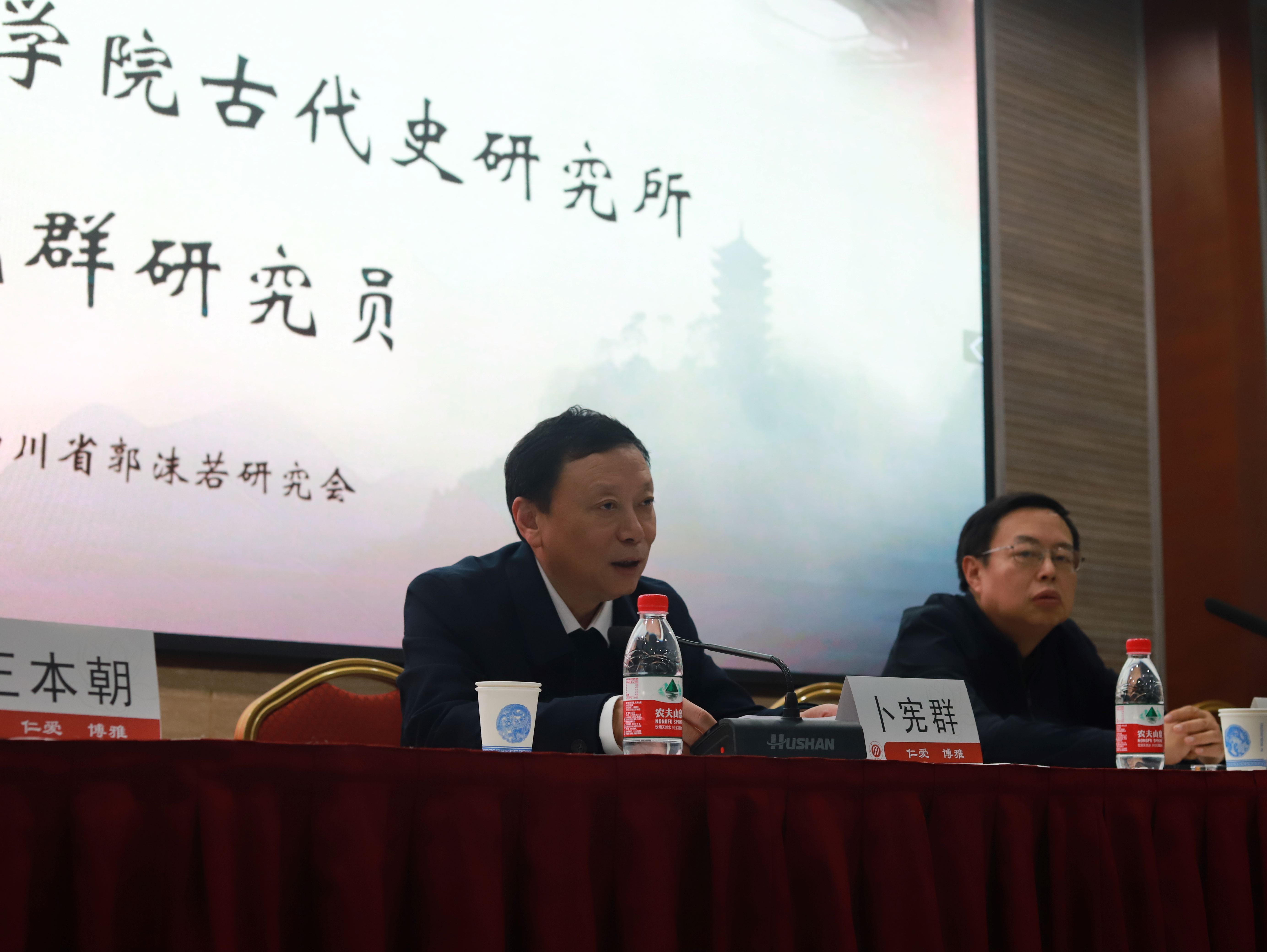 大会闭幕式由中国社会科学院郭沫若纪念馆张勇研究员主持。四个分论坛分别作了小组总结。四川大学文学与新闻学院李怡教授对大会作了学术点评,并提出了未来郭沫若研究的思路与方法。卜宪群会长从关注学术发展前沿动态、传承老一辈学者的优良学风、构筑郭沫若研究的学术体系等方面对郭沫若研究今后的发展作出展望。王本朝院长致答谢词,并期待继续加强学术交流,共同促进郭沫若研究发展。