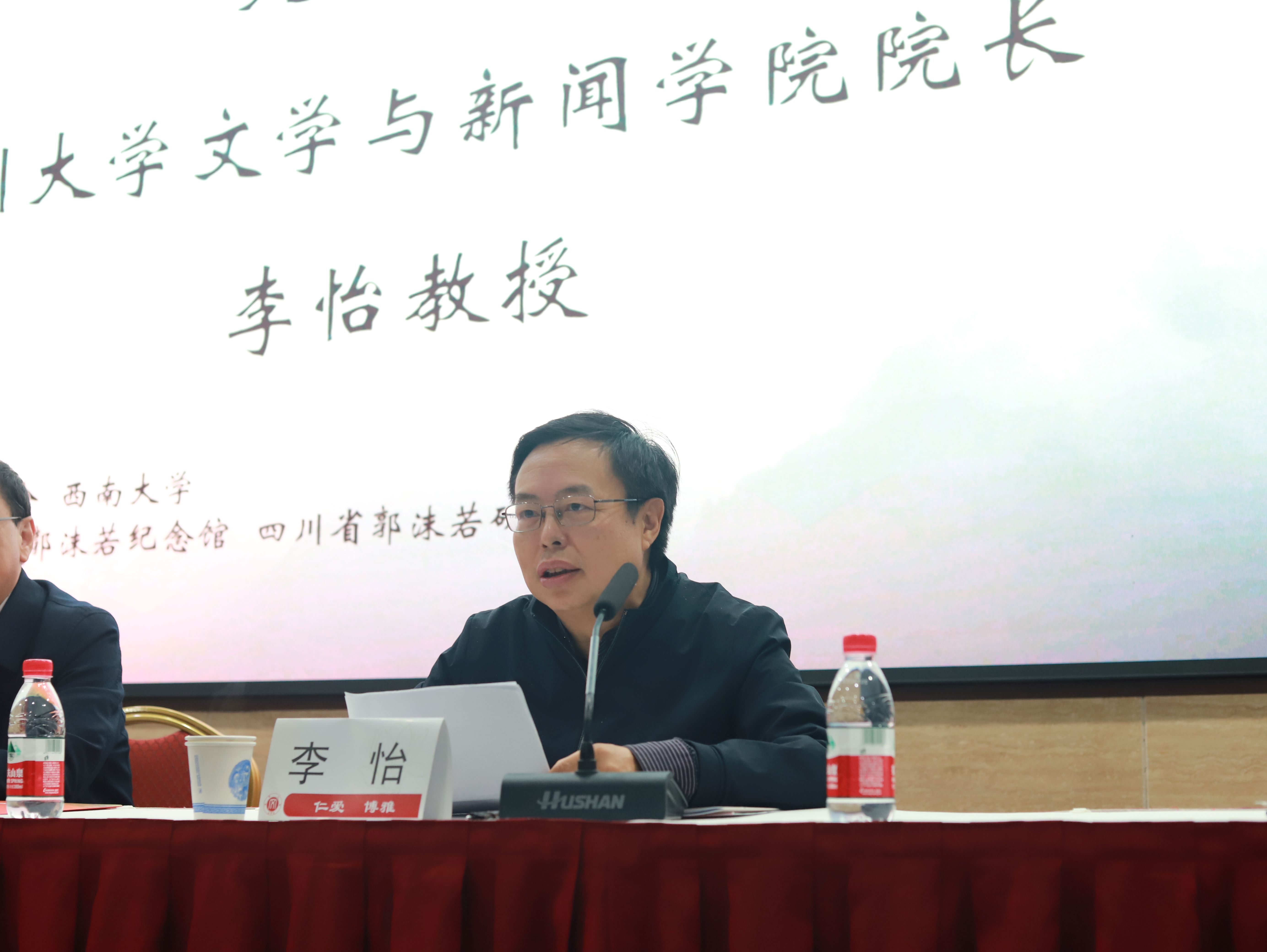 潘洵副书记对西南大学的办学情况进行了介绍,向兄弟高校和科研院所对西南大学的支持和帮助表示感谢。回顾了抗战时期郭沫若在重庆和北碚留下的战斗足迹。他指出,在新时代背景下探讨郭沫若先生的思想与作品,不仅是对一位文化巨擘的深切缅怀,更是对中华优秀文化创造性转化与创新性发展的积极探索。