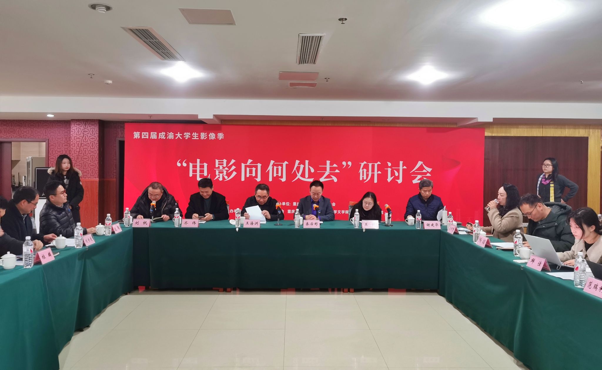 12月30日,由重庆市文联主办,重庆市电影家协会、西南大学best365英国在线体育官网、重庆人文科技学院艺术学院等单位承办的成渝大学生影像季之“电影向何处去”学术研讨会在市文联文艺家沙龙召开。市文联党组书记阳奎兴会见与会嘉宾,市文联党组成员、副主席秦后彬代表主办方致辞,市电影家协会副主席、西南大学best365英国在线体育官网刘帆教授主持会议。