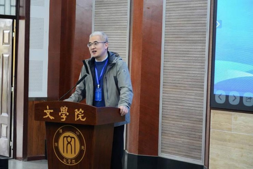 学院党委书记秦松致欢迎辞,他介绍了学院在学科建设与人才培养方面的积淀与成就,并指出会议旨在落实教育家精神铸魂强师,加强新时代高素质专业化教师队伍建设,通过搭建交流平台,探索师范专业改革发展新路径,共同推动语文教育事业创新发展。