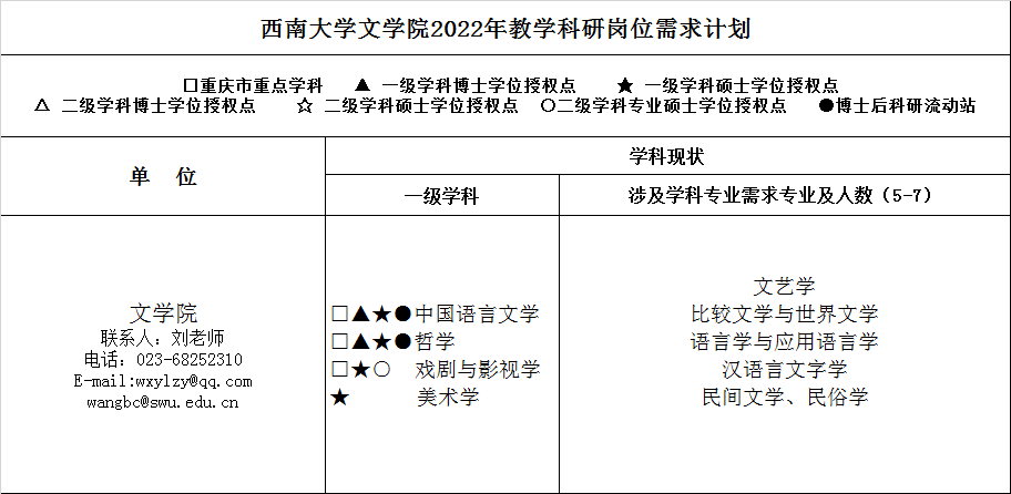 应聘人员需符合《西南大学关于做好2022年教学科研岗位教师选聘工作的通知》http://renshi.swu.edu.cn/s/renshi/index2/20220321/4737816.html及相关文件要求。