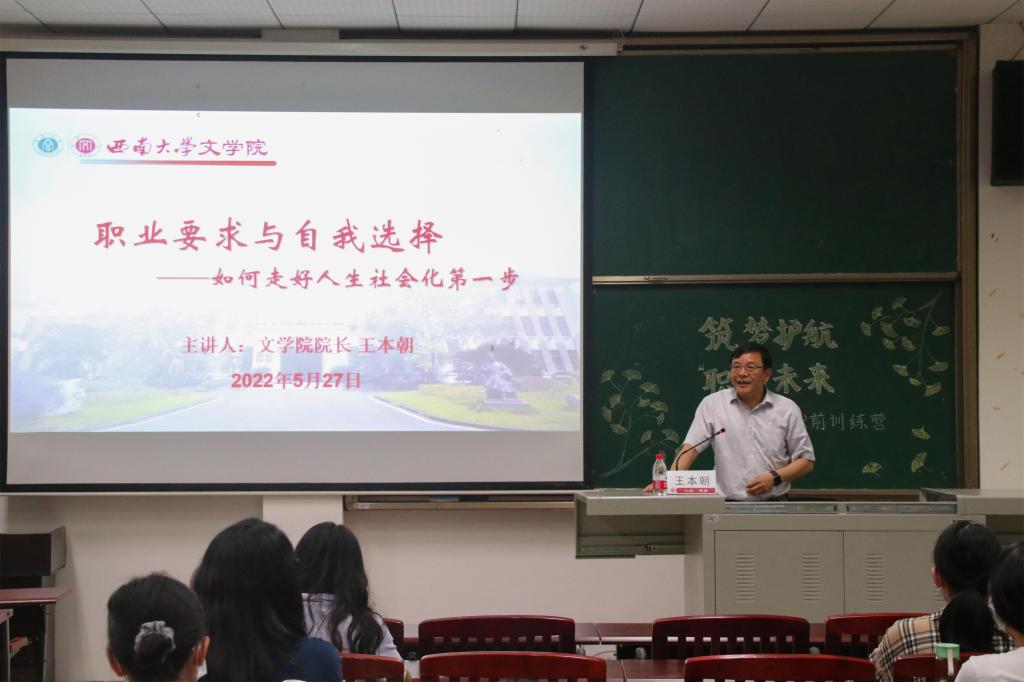 5月27日下午,best365英国在线体育官网举办“筑梦护航,‘职’面未来” 第一期毕业生职前训练营。本期训练营以“职业要求与自我选择——如何走好人生社会化第一步”为主题,国家级人才、best365英国在线体育官网院长王本朝教授担任主讲人,全体2022届本科毕业生通过线上线下方式参加。
