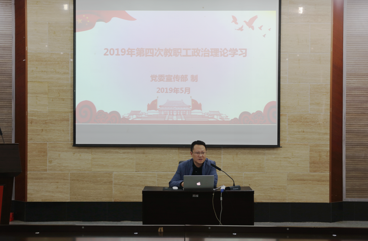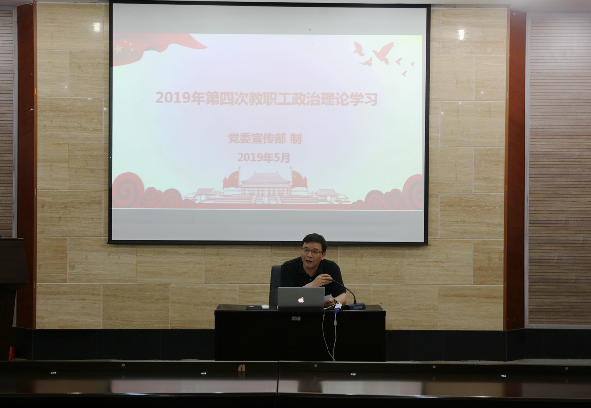 2019年5月5日下午2点30分,best365英国在线体育官网在雨僧楼101学术报告厅召开2019年第四次教职工政治理论学习会议,会议由best365英国在线体育官网党委副书记、纪委书记邓洪波主持,全体教职工参加了会议。